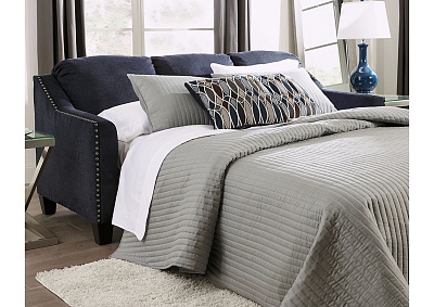 ASHLEY диван 3-М CREEAL HEIGHTS,раскладной( коллекция AMERICAN LIFESTYLE).Стиль: американский Contemporary Living.Тип: диван - кровать с раскладным спальным механизмом "французская раскладушка" и двумя декоративными подушками в комплекте,матрас размер( 153/183/10),с высококачественным наполнителем Memory Foam( эффект памяти).Цвет: тёмно-синий.Обивка: сложнофактурная ткань,100% полиэстер,категория высшая,одобрена по высоким американским стандартам качества AHFA( износостойкость,долговечность).Отделка: декоративные металлические мебельные гвозди.Размеры,мм: ш.2057/г.914/в.940.