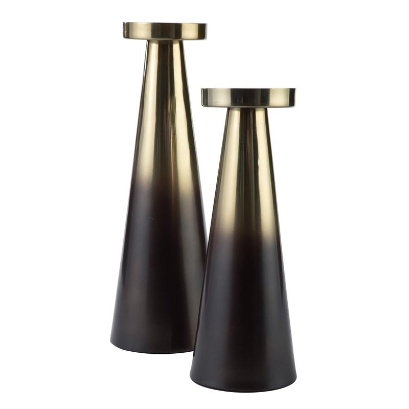 ASHLEY подсвечник THESEUS (коллекция AMERICAN HOME ACCENT).Стиль: американский Modern.Тип: сет из двух металлических подсвечников конической формы.Цвет: золотой/коричневый. Размеры,мм: большой( ш.102/г.102/ в.406)/маленький( ш.102/г.102/в.330).