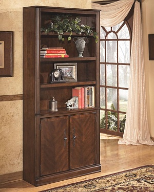 ASHLEY шкаф HAMLYN (коллекция AMERICAN LIFESTYLE).Стиль: американский Classical.Тип: многофункциональный книжный шкаф, с четырьмя регулируемыми по высоте полками(три из них открытые) и одним нижним шкафом для хранения .Цвет: коричневый.Отделка: шпон вишни,инкрустация фасадов шпон Prima Vera(белый махагон),антикварная бронзовая мелаллическая фурнитура.Размеры,мм:ш.870/г.300/в.1910.