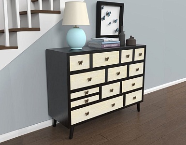 STEVE SILVER комод PAPILLON.Стиль: американский Modern.Тип: многофункциональный акцентный комод ; тринадцать асимметричных выдвижных ящиков.Цвет: чёрный/слоновая кость.Отделка: манговое дерево; состаренная латунная фурнитура в виде бабочки.Размеры,мм:ш.1168/г.406/в.902.