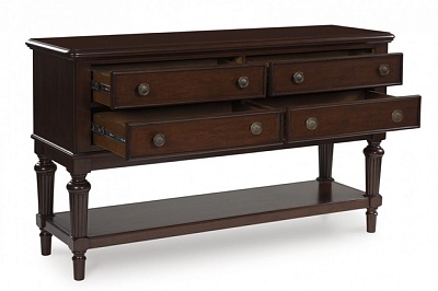 - 4 выдвижных ящика с плавным механизмом и фетровой подкладкой, которые обладают полностью отделанной внутренней частью и прочными боковыми направляющими на шарикоподшипниках.