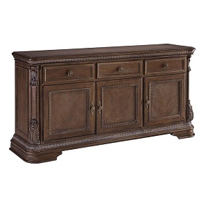 ASHLEY буфет для столовой CHARMOND (коллекция AMERICAN LIFESTYLE).Стиль: американский Grand Elegance.Тип: буфет для столовой,три двери,три ящика обитые фетром,два шкафа,один из них двойной большой,каждый с регулируемой полкой.Цвет: коричневый с белыми бликами.Отделка: патинированный шпон дуба,акценты из литой смолы,металлическая бронзовая фурнитура.Размеры,мм:ш.1753/г.457/в.864.