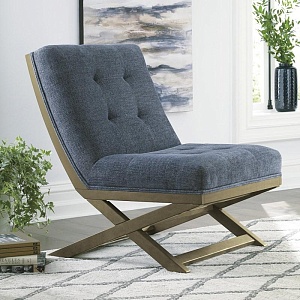 ASHLEY кресло SIDEWINDER (коллекция AMERICAN LIFESTYLE).Стиль: американский Casual .Тип: акцентное кресло без подлокотников с ножницеобразным, деревянным открытым основанием.Цвет: синий.Обивка: сложнофактурная ткань100% полиэстер,категория высшая,одобрена по высоким американским стандартам качества AHFA(износостойкость,долговечность).Отделка: тафтинг.Размеры,мм:ш.711/г.880/в.908.