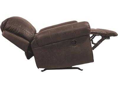 ASHLEY кресло BREVILLE( коллекция AMERICAN LIFESTYLE) .Стиль: американский Vintage Casual .Тип: кресло-качалка реклайнер с механическим приводом.Цвет: доступны: тёмно-серый/коричневый.Обивка: 3% экокожа;97% полиэстер( ткань),категория высшая,одобрена по высоким американским стандартам качества AHFA(износостойкость,долговечность).Отделка:декоративные металлические мебельные гвозди.Размеры,мм:ш.1090/г.1020/в.1020.