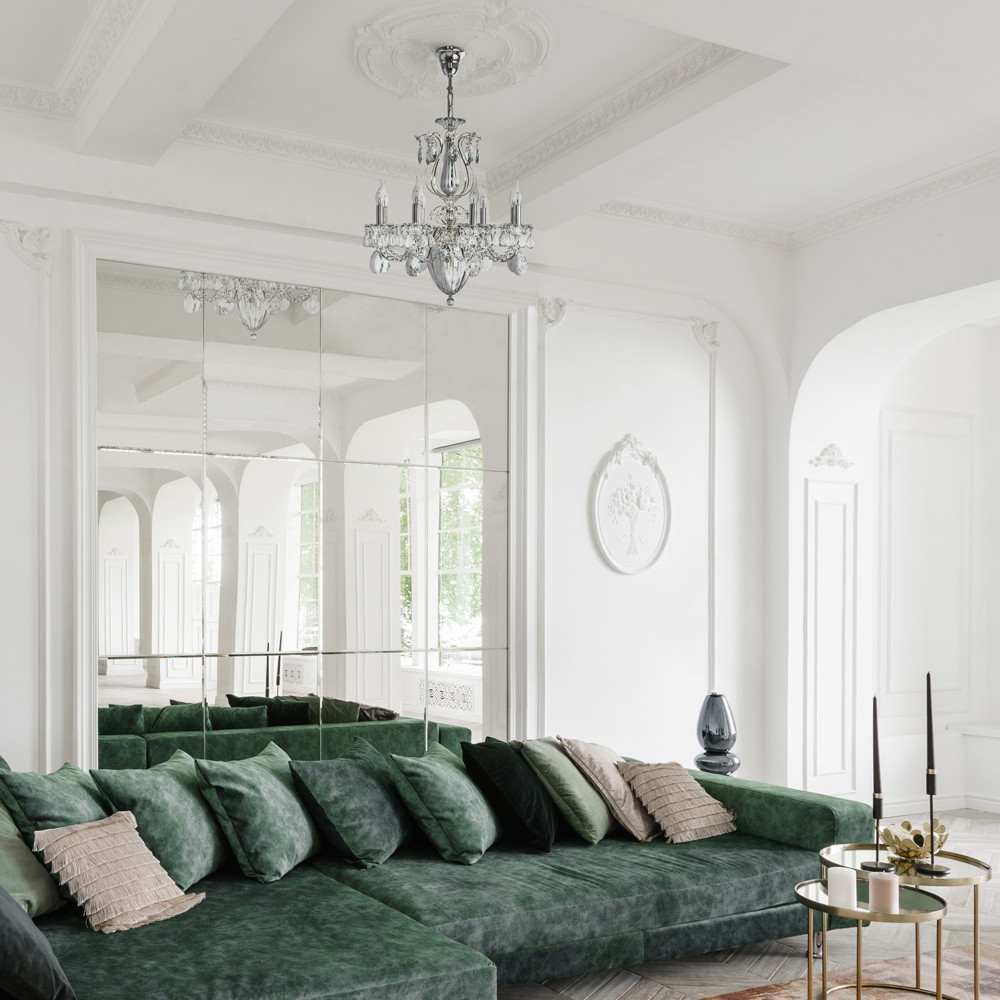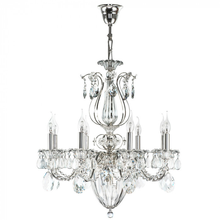 LIGHTSTAR S.R.L. люстра SCHON.Стиль: Art-Deco.Тип: восьмирожковая,одиннадцатиламповая подвесная люстра,с одним плафоном.Цвет: серебро.Отделка: бронза,прозрачные хрустальные подвески и чашки.Размеры,мм:д.660/в.720.