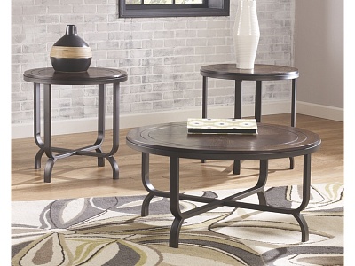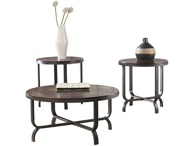 ASHLEY набор FERLIN (коллекция AMERICAN LIFESTYLE).Стиль: американский Modern.Тип: набор круглых столов: журнальный + два приставных на металлическом основании.Цвет: коричневый.Отделка: наборный шпон с рифлёными вставками; бронза.Размеры,мм: журнальный(ш.908/г.908/в.467)/приставной(ш.610/г.610/в.616).