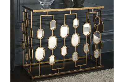 ASHLEY стол MAJACI (коллекция AMERICAN LIFESTYLE).Стиль:американский Modern .Тип: консольный акцентный стол.Цвет:золотой.Отделка: античное золото,зеркальные элементы.Размеры,мм:ш.914/г.406/в.759.