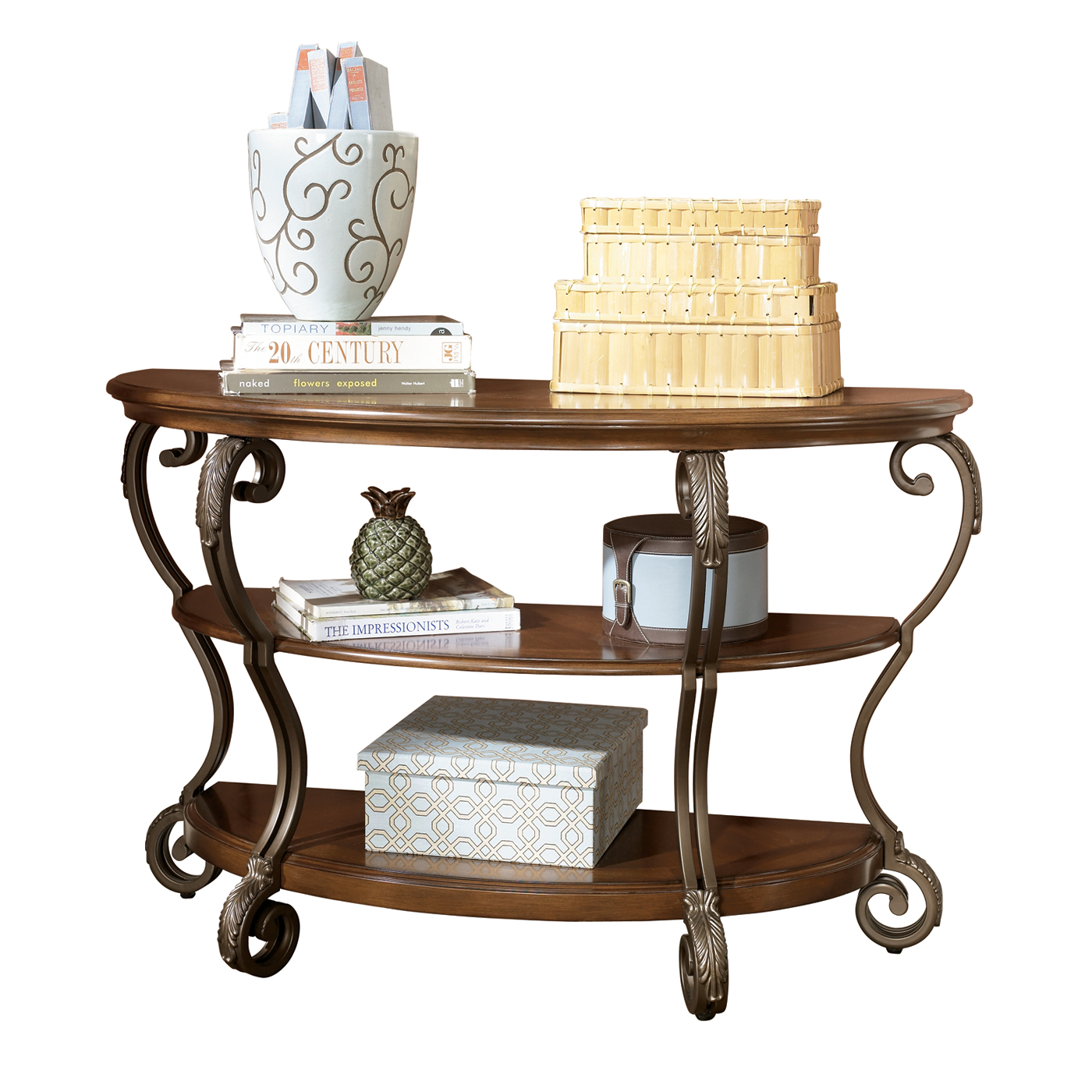 ASHLEY стол NESTOR (коллекция AMERICAN LIFESTYLE).Стиль:американский New Traditions .Тип: консольный стол с тремя открытыми фиксированными полками и гнутыми металлическими ножками .Цвет: коричневый.Отделка: тёмная матовая бронза.Размеры,мм:ш.1220/г.483/в.772.