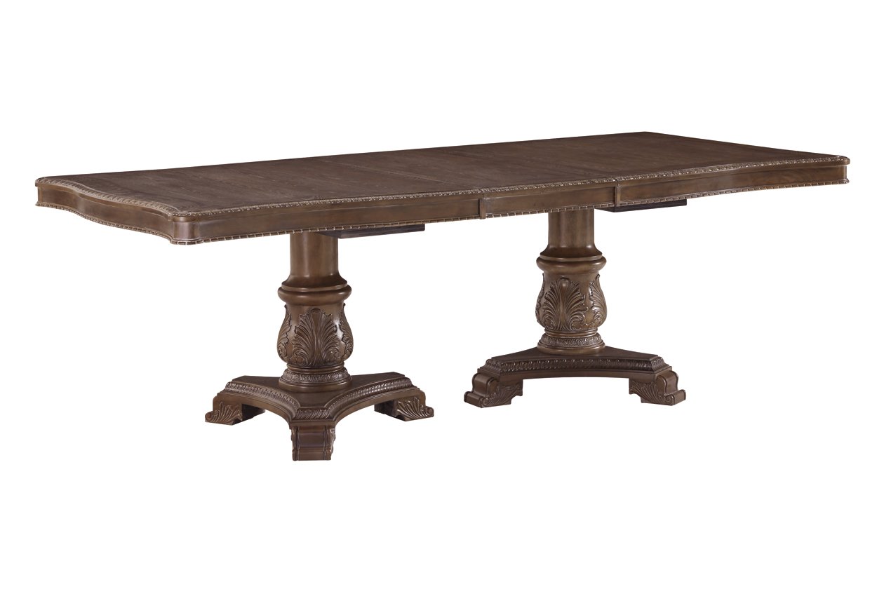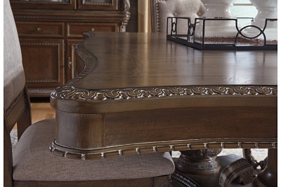 ASHLEY стол CHARMOND(коллекция AMERICAN LIFESTYLE).Стиль: американский Grand Elegance.Тип: раскладной обеденный стол на десять персон,размер в разложенном виде,мм:ш.2708.Цвет: коричневый с белыми бликами.Отделка: патинированный шпон дуба,акценты из литой смолы.Размеры,мм:ш.1800/г.1108/в.860.