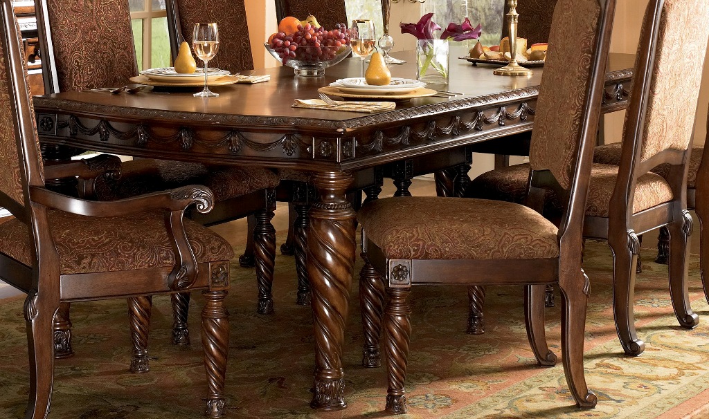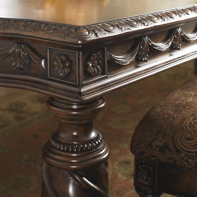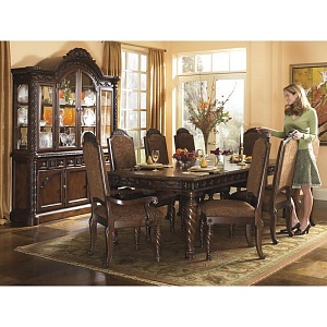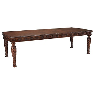 ASHLEY стол NORTH SHORE(коллекция AMERICAN LIFESTYLE).Стиль: американский Traditional.Тип: обеденный стол раскладной прямоугольный на восемь персон,размер в разложенном виде,мм:ш.2750.Цвет: тёмно-коричневый.Отделка: кедровый шпон,акценты и аппликации из литой смолы,закрученные по спирали ножки.Размеры,мм:ш.1850/г.1120/в.787.