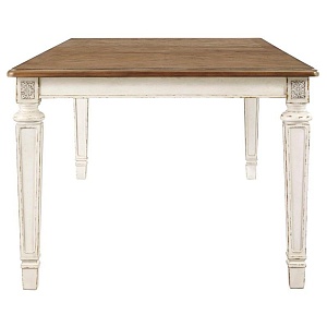 ASHLEY стол REALYN (коллекция AMERICAN LIFESTYLE).Стиль: американский Vintage Casual.Тип: стол обеденный раскладной прямоугольный, на восемь персон,размер в разложенном виде,мм:ш.2440.Цвет: белый,коричневый.Отделка:патинированная двухцветная, искусственно состаренная,столешница шпон дуба и берёзы.Размеры,мм:ш.1980/г.1073/в.762.