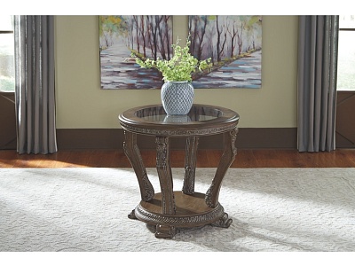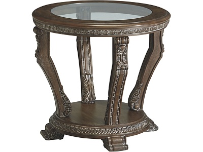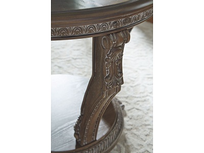 ASHLEY стол CHARMOND (коллекция AMERICAN LIFESTYLE).Стиль: американский Grand Elegance.Тип: круглый приставной стол,с одной открытой фиксированной полкой.Цвет: коричневый.Отделка: шпон дуба с белыми бликами,декоративные элементы из литой смолы,термостекло.Размеры,мм:ш.711/г.711/в.661.