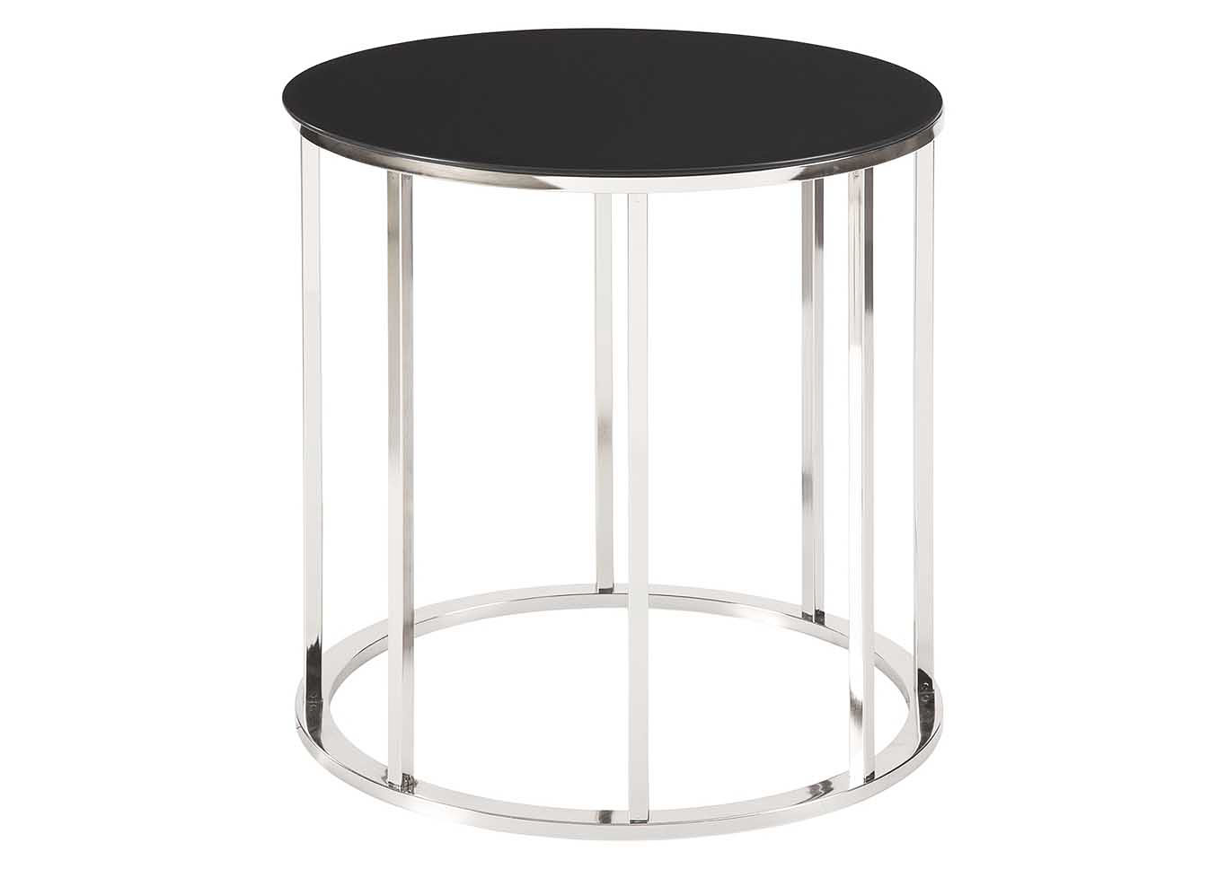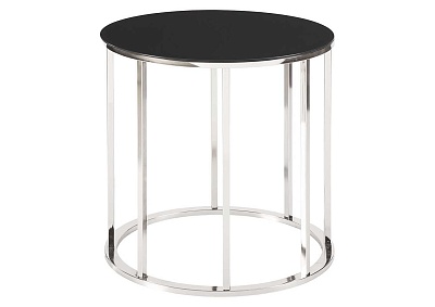 ASHLEY стол CLENCO (коллекция AMERICAN LIFESTYLE).Стиль: американский Modern.Тип: круглый приставной стол с трубчатым металлическим основанием.Цвет: чёрный/хром.Отделка: чёрное термостекло; хром.Размеры,мм: ш.559/г.559/в.572.
