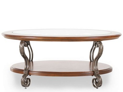 ASHLEY стол NESTOR (коллекция AMERICAN LIFESTYLE).Стиль: американский New Traditions.Тип: овальный журнальный стол с одной открытой фиксированной полкой и гнутыми металлическими ножками .Цвет:коричневый.Отделка:термополированное стекло с фацетом,литой вензель,тёмная матовая бронза.Размеры,мм:ш.1216/г.865/в.510.