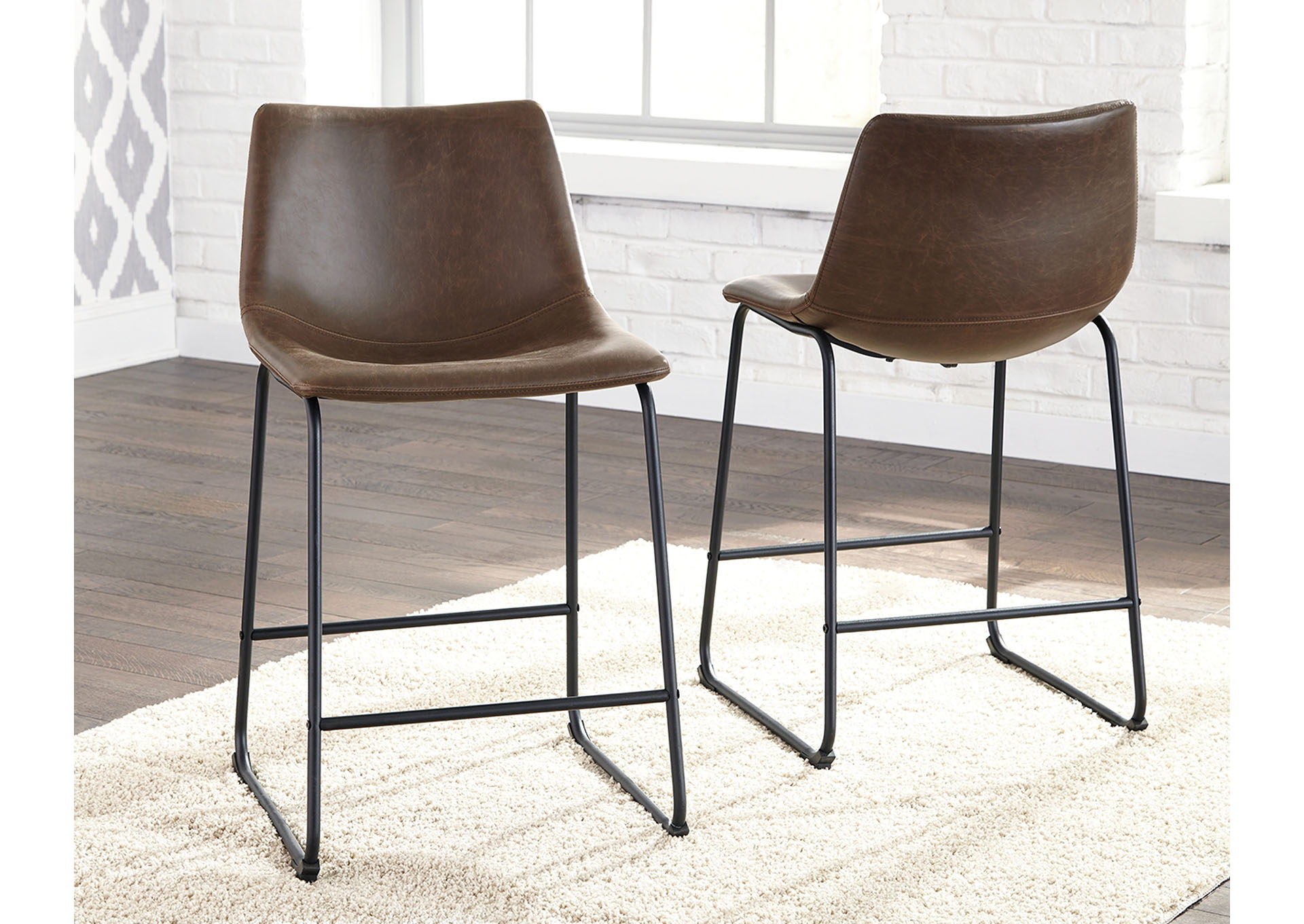 ASHLEY стул CENTIAR ( коллекция AMERICAN LIFESTYLE).Стиль: американский Casual.Тип: стул барный, с контурным ковшеобразным мягким сиденьем и трубчатым металлическим основанием.Цвет: коричневый.Обивка: экокожа,категория высшая,одобрена по высоким американским стандартам качества AHFA( износостойкость,долговечность).Отделка: искусственно состаренная.Размеры,мм: ш.500/г.540/в.880.