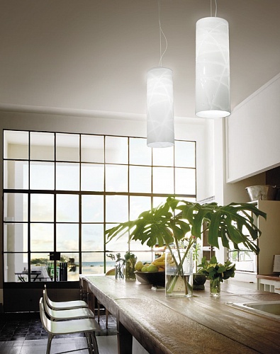 VISTOSI светильник FOLLIA.Стиль: Modern.Тип: светильник с одним подвесным плафоном ручной работы.Цвет: прозрачный/белый.Отделка: цвет основания никель.Размеры,мм: д.150/в.3000.