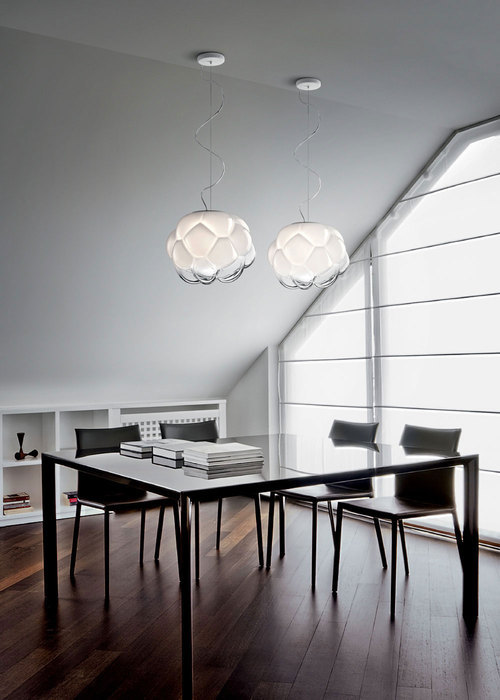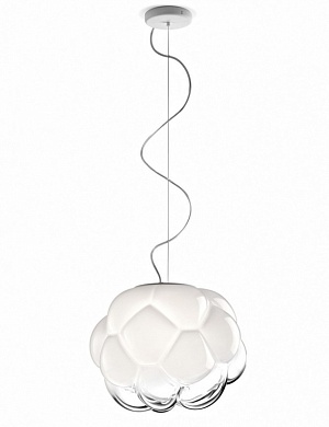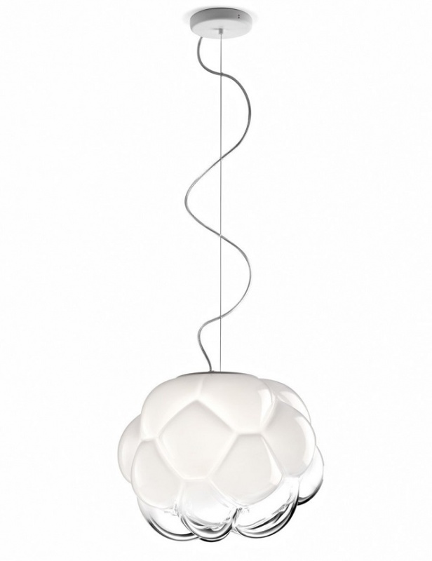 F.FABBIAN светильник CLOUDY(дизайн Mathieu Lehanneur).Стиль: Modern.Тип: подвесной светильник с одним оригинальным стеклянным плафоном.Цвет: полупрозрачный,белый.Отделка: алюминиевая,выдувное стекло ручной работы в виде облака.Размеры,мм:диам.400/в.310(без подвеса),в. min 150 - max 2000(с подвесом).