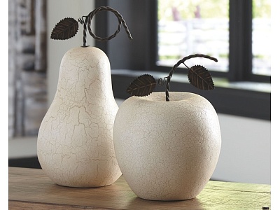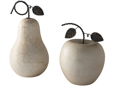 ASHLEY скульптура BIDELIA (коллекция AMERICAN HOME ACCENT).Стиль: американский Vintage Casual.Тип: сет из пары скульптур в виде яблока и груши с бронзовыми металлическими элементами.Цвет: белый.Отделка: искусственно состаренная.Размеры,мм: ш.178/178/г.178/в.356/254.