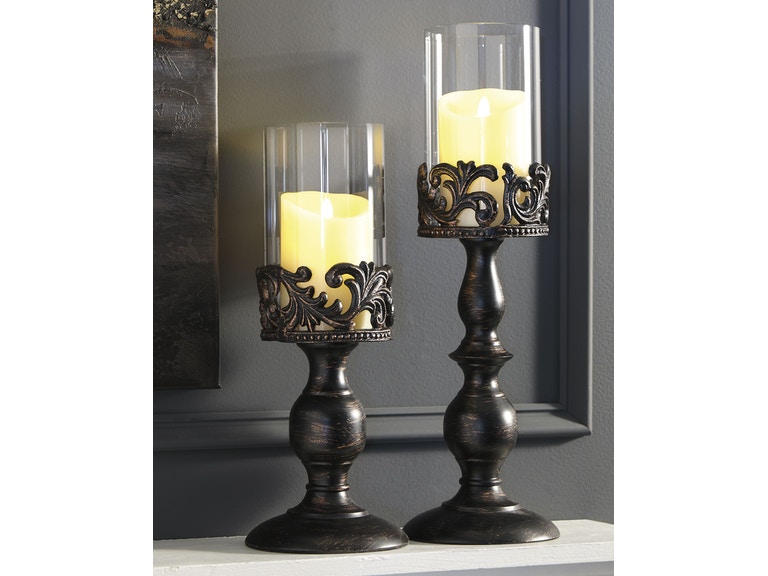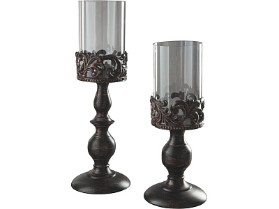 ASHLEY подсвечник CONSTANCE BLACK (коллекция AMERICAN HOME ACCENT).Стиль: американский Classical .Тип: сет из пары стеклянных подсвечников с основанием из металла в виде кубка .Цвет: чёрный.Отделка: искусственно состаренная; орнамент в стиле листьев аканта. Размеры,мм: ш.152/г.152 в.508/406.
