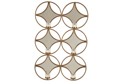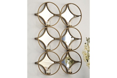 ASHLEY подсвечник EMILIA (коллекция AMERICAN WALL DECOR).Стиль: американский Modern.Тип: настенный стеклянно- металлический мульти подсвечник.Цвет: золото.Отделка: античное золото; зеркала .Размеры,мм:ш.508/г.95/в.1016.
