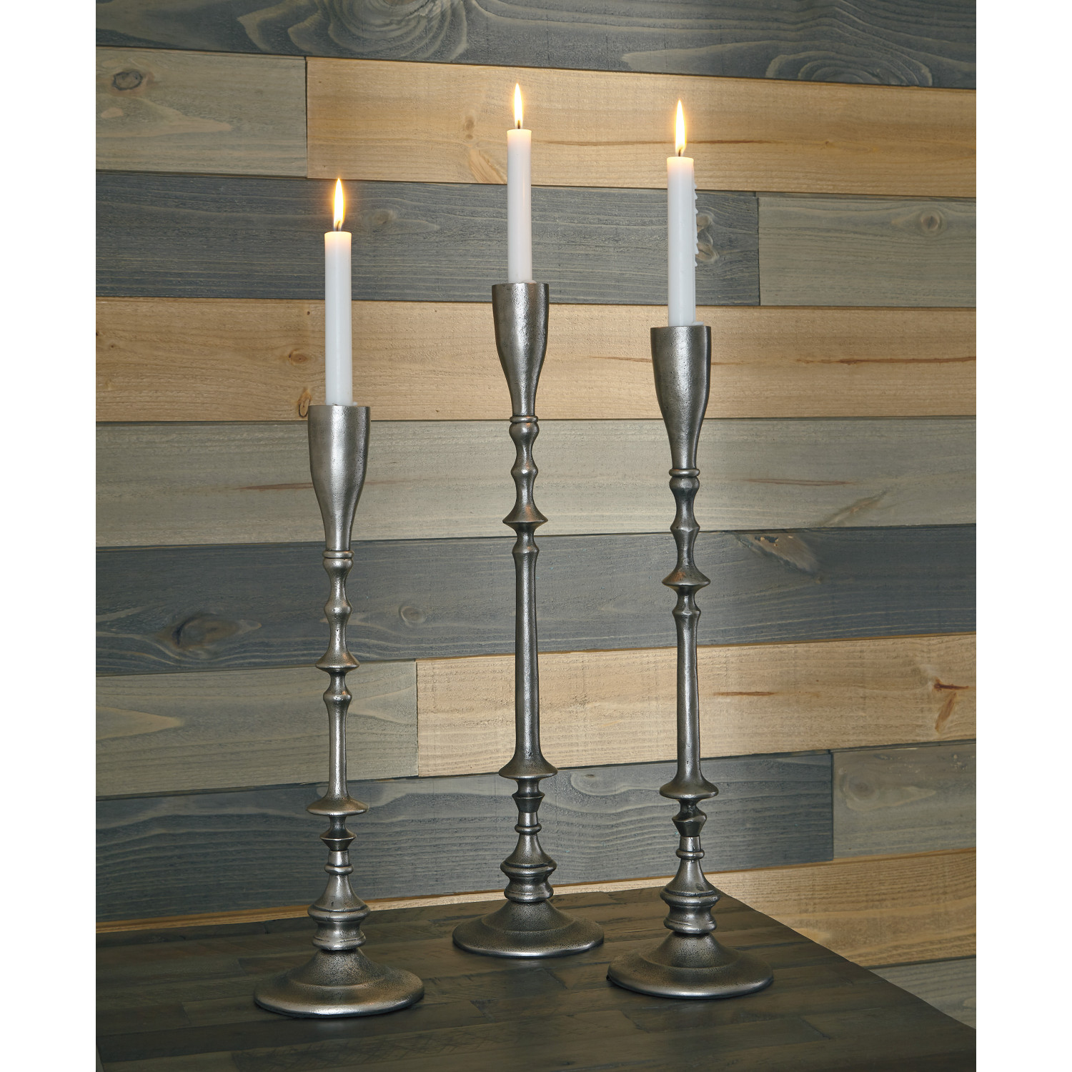 ASHLEY подсвечник DIMAIA SILVER (коллекция AMERICAN HOME ACCENT).Стиль: американский Classical.Тип: сет из тройки металлических подсвечников.Цвет: серебристый.Отделка: античное серебро. Размеры,мм: большой( ш.140/г.140/ в.585)/средний( ш.140/г.140/в.534)/маленький( ш.140/г.140/в.457).