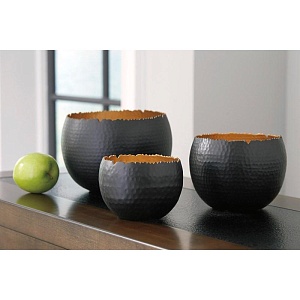 ASHLEY ваза CLAUDINE (коллекция AMERICAN HOME ACCENT). Стиль: американский Modern.Тип: сет из трёх кованных ваз-чаш. Цвет: чёрный/золото. Отделка: металлическая в чёрном и золотом цветах.Размеры:мм.большая(ш.216/г.216/в.140)/средняя(ш.165/г.165/в.127)/маленькая(ш.127/г.127/в.92).