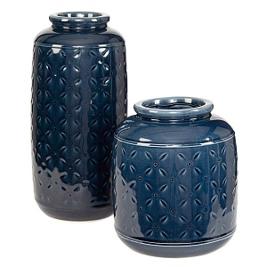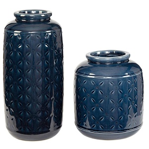 ASHLEY ваза MARENDA (коллекция AMERICAN HOME ACCENT). Стиль: американский Casual .Тип: сет из пары керамических ваз для цветов. Цвет: тёмно-синий. Отделка: глазурованная керамика; узор в образе плоского морского ежа.Размеры:мм.большая(ш.150/г.150/в.310)/маленькая(ш.180/г.180/в.205).