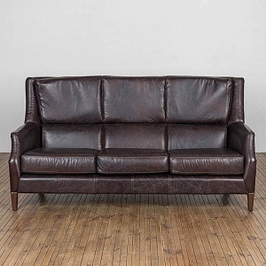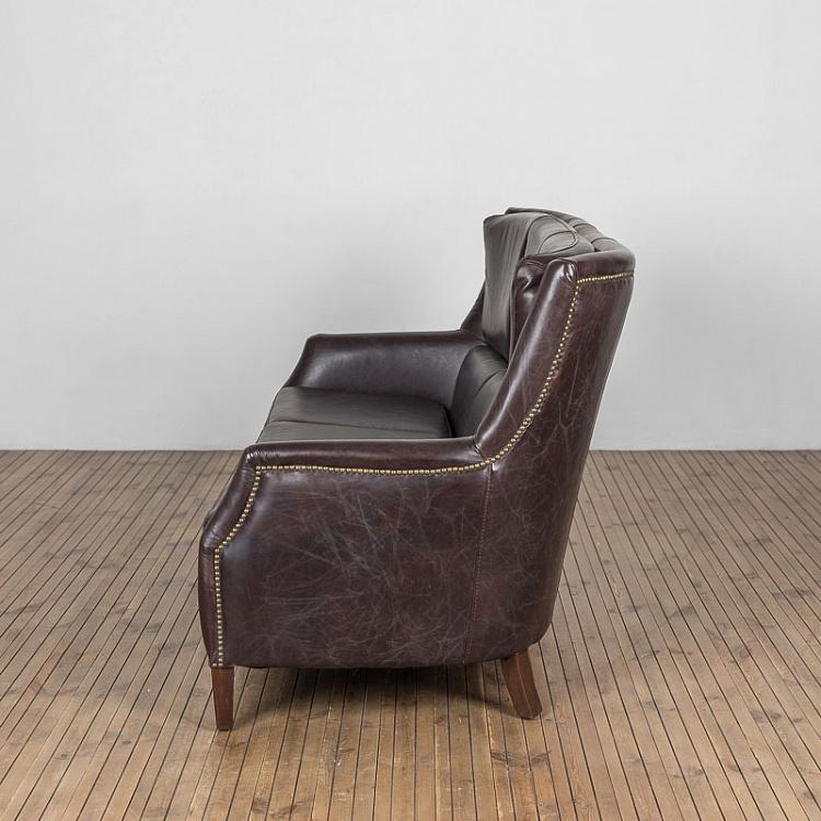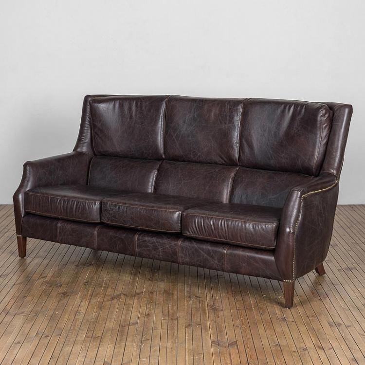 HALO EST.1976 диван 3-М CHELSEA ( дизайн Timothy Oulton) .Стиль: British classic.Тип: диван трёхместный нераскладной с высокой спинкой на открытых ножках.Цвет: тёмно- коричневый.Обивка:100% кожа Biker Dark Brown - пропитанная воском мягкая и прочная состаренная анилиновая кожа буйвола уникальной ручной выделки тёмно- коричневого цвета.Отделка: латунные мебельные гвозди.Размеры,мм: ш.1910/г.960/в.980.
