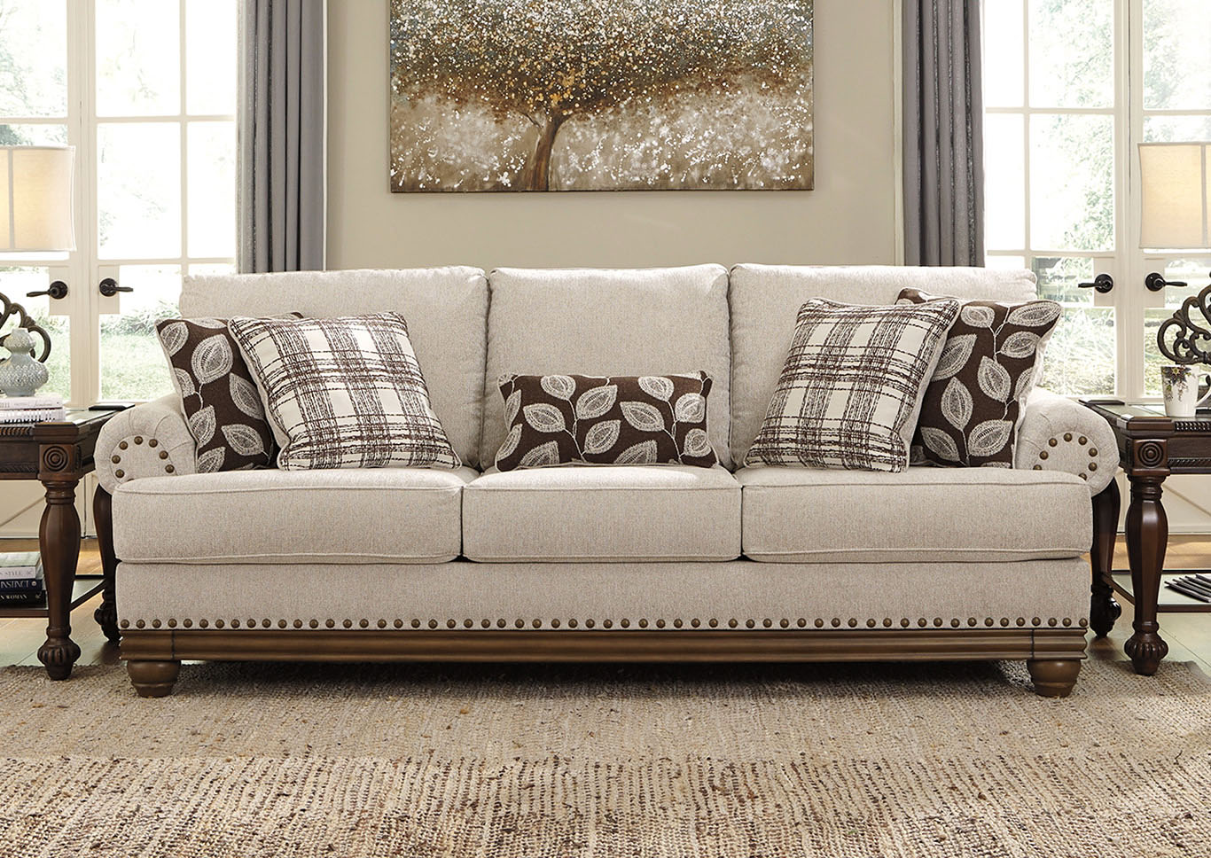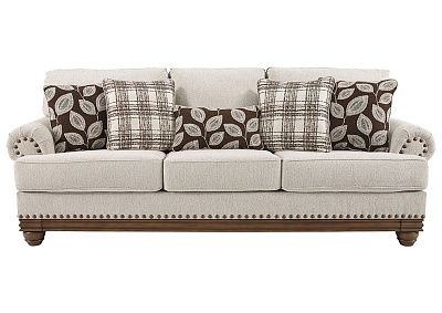 ASHLEY диван 3-М HARLESON ( коллекция AMERICAN LIFESTYLE).Стиль: американский Traditional.Тип: диван трёхместный нераскладной с пятью декоративными подушками в комплекте.Цвет: бежевый.Обивка: сложнофактурная ткань,100% полиэстер,категория высшая,одобрена по высоким американским стандартам качества AHFA(износостойкость,долговечность).Отделка: декоративные металлические мебельные гвозди.Размеры.мм:ш.2540/г.1041/в.1016.