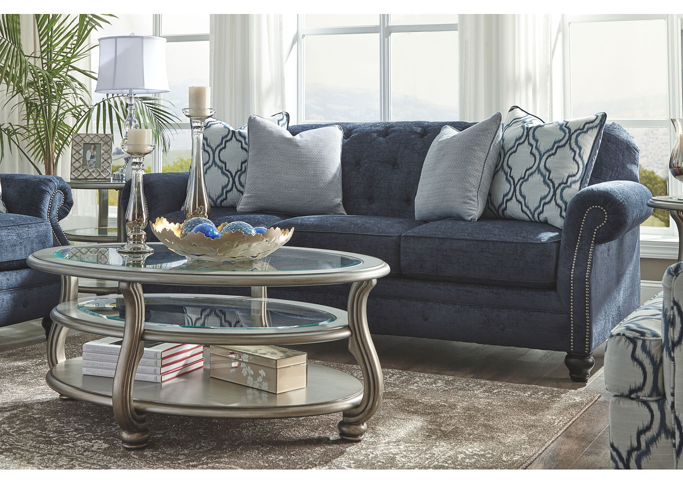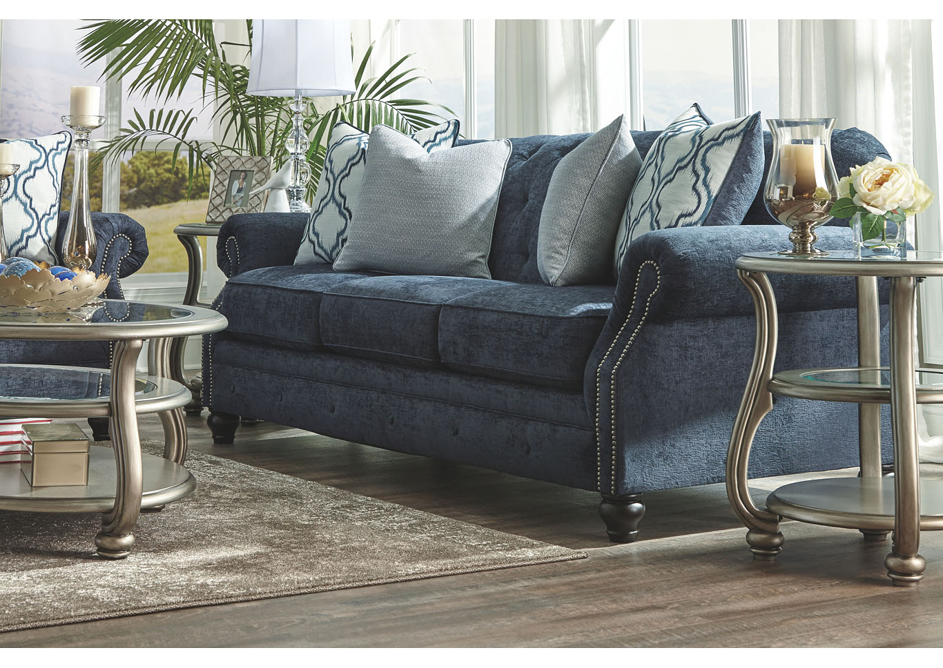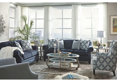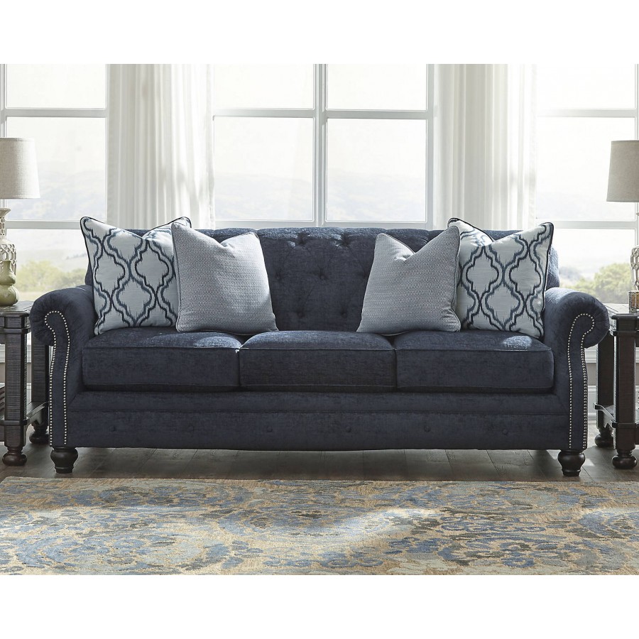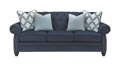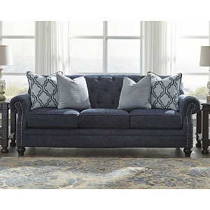 ASHLEY диван 3-М LAVERNIA ( коллекция AMERICAN LIFESTYLE).Стиль:американский Traditional.Тип: диван трёхместный дизайн Chesterfield нераскладной с четырьмя декоративными подушками в комплекте.Цвет: синий.Обивка:сложнофактурная ткань,100% полиэстер,категория высшая,одобрена по высоким американским стандартам качества AHFA(износостойкость,долговечность).Отделка: стёжка капитоне; декоративные металлические мебельные гвозди.Размеры.мм:ш.2311/г.991/в.991.