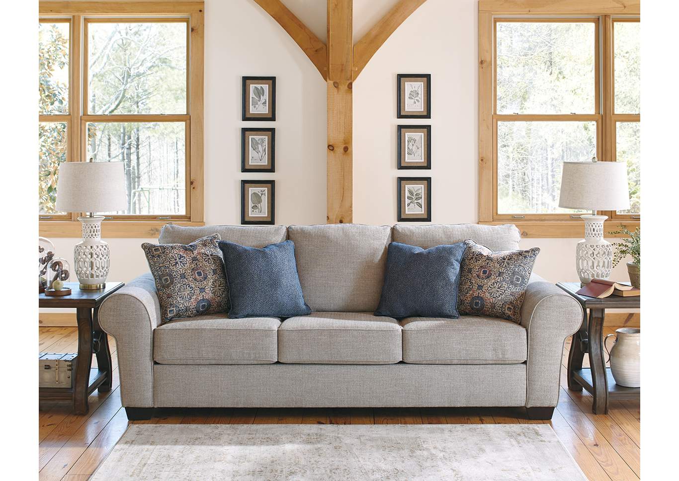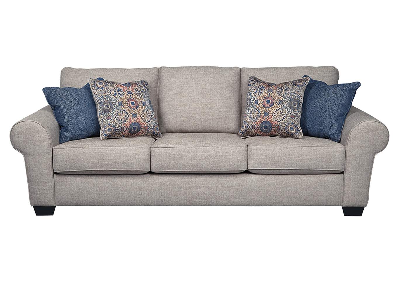 ASHLEY диван 3-М BELCAMPO( коллекция AMERICAN LIFESTYLE). .Стиль: американский Vintage Casual.Тип: диван-кровать,с раскладным спальным механизмом "французская раскладушка" и четырьмя декоративными подушками в комплекте,матрас размер(153/183/10) с высококачественным наполнителем Memory Foam(эффект памяти).Цвет: серый.Обивка: сложнофактурная ткань100% полиэстер,категория высшая,одобрена по высоким американским стандартам качества AHFA(износостойкость,долговечность).Размеры,мм:ш.2591/г.1041/в.1016.