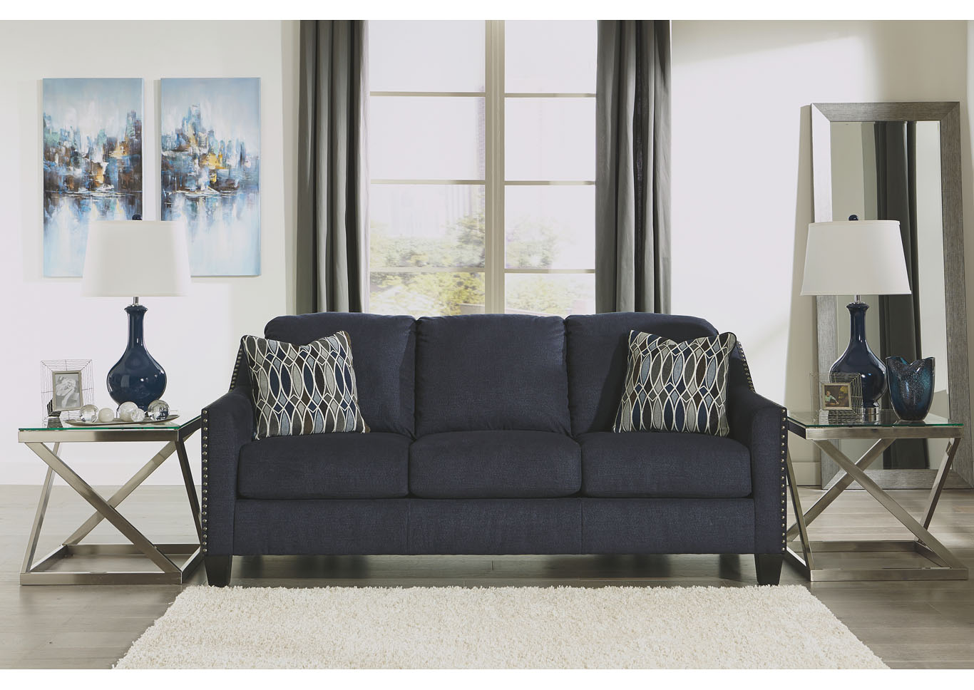 ASHLEY диван 3-М CREEAL HEIGHTS,раскладной( коллекция AMERICAN LIFESTYLE).Стиль: американский Contemporary Living.Тип: диван - кровать с раскладным спальным механизмом "французская раскладушка" и двумя декоративными подушками в комплекте,матрас размер( 153/183/10),с высококачественным наполнителем Memory Foam( эффект памяти).Цвет: тёмно-синий.Обивка: сложнофактурная ткань,100% полиэстер,категория высшая,одобрена по высоким американским стандартам качества AHFA( износостойкость,долговечность).Отделка: декоративные металлические мебельные гвозди.Размеры,мм: ш.2057/г.914/в.940.