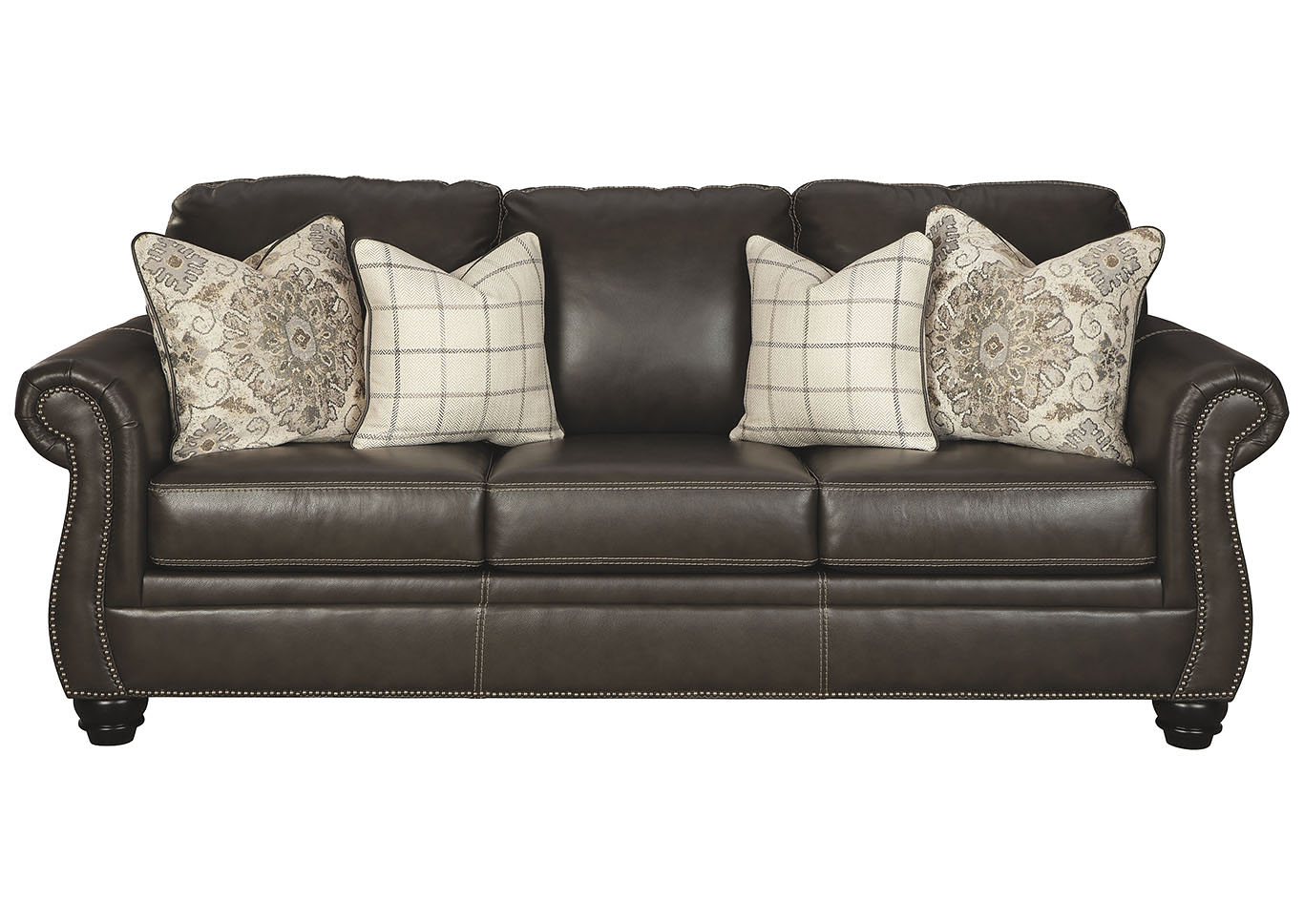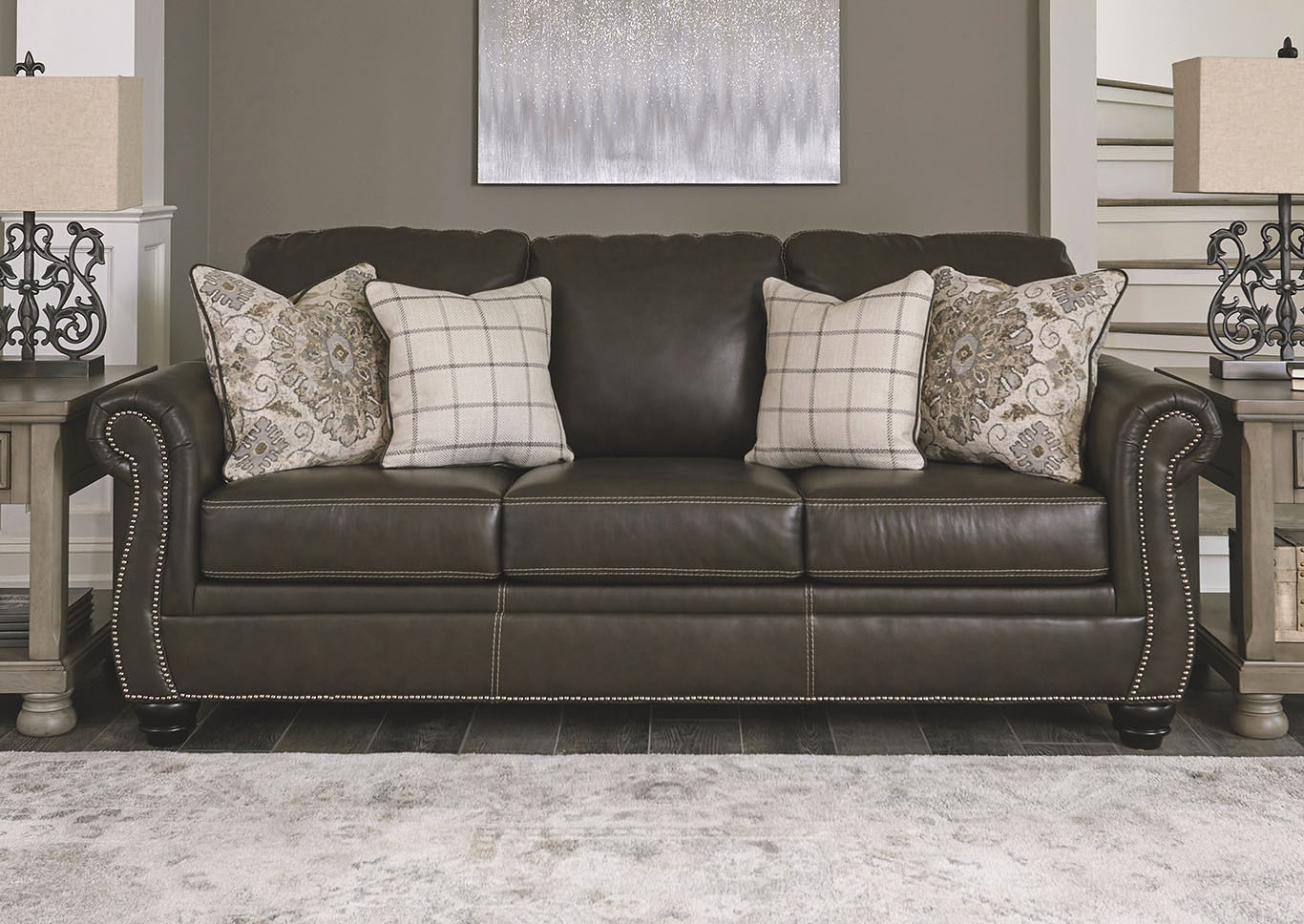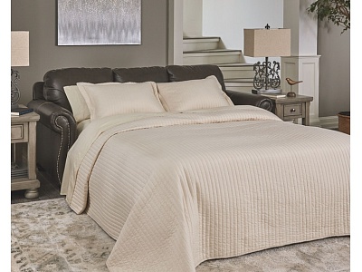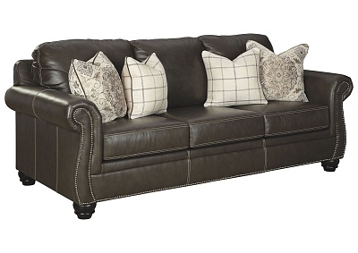 ASHLEY диван 3-М LAWTHORN ( коллекция AMERICAN LIFESTYLE).Стиль: американский Traditional.Тип: диван-кровать,с раскладным спальным механизмом"французская раскладушка"и четырьмя декоративными подушками в комплекте,матрас размер( 153/183/10 ),с высококачественным наполнителем Memory Foam( эффект памяти ).Цвет: серый.Обивка: тело( вся внутренняя часть) 100% кожа;корпус экокожа( 74% пвх; 26% полиэстер),категория высшая,одобрена по высоким американским стандартам качества AHFA ( износостойкость,долговечность).Отделка: металлические мебельные гвозди.Размеры,мм: ш.2210/г.991/в.991.