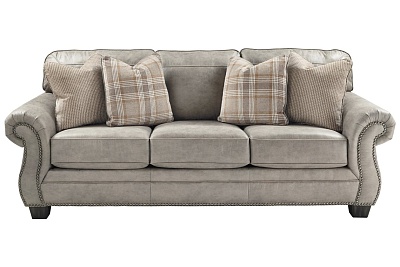 ASHLEY диван 3-М OLSBERG( коллекция AMERICAN LIFESTYLE).Стиль:американский Vintage Casual.Тип:диван- кровать,с раскладным спальным механизмом "французская раскладушка" и четырьмя декоративными подушками в комплекте,матрас размер(153/183/10), с высококачественным наполнителем Memory Foam(эффект памяти).Цвет: серый.Обивка: экокожа( 3% полиуретан;97% полиэстер),категория высшая,одобрена по высоким американским стандартам качества AHFA(износостойкость,долговечность).Отделка:декоративные металлические мебельные гвозди.Размеры,мм:ш.2388/г.965/в.965.