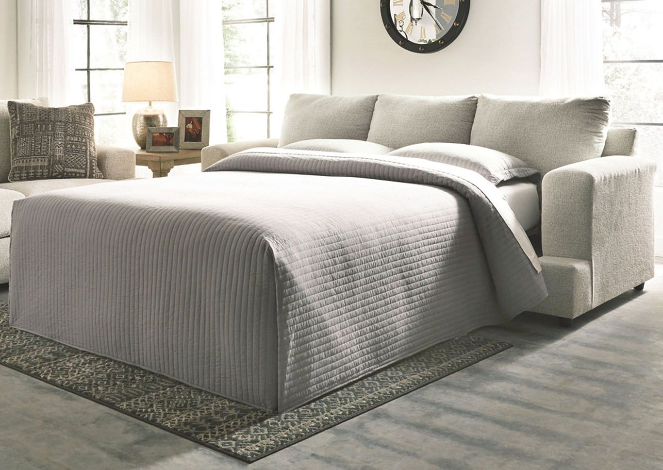 ASHLEY диван 3-М SOLETREN( коллекция AMERICAN LIFESTYLE).Стиль: американский Modern.Тип: диван-кровать,с раскладным спальным механизмом "французская раскладушка" и четырьмя декоративными подушками в комплекте,матрас размер(153/183/10) с высококачественным наполнителем Memory Foam(эффект памяти).Цвет: бежевый.Обивка: сложнофактурная ткань100% полиэстер,категория высшая,одобрена по высоким американским стандартам качества AHFA(износостойкость,долговечность).Размеры,мм:ш.2439/г.1016/в.991.