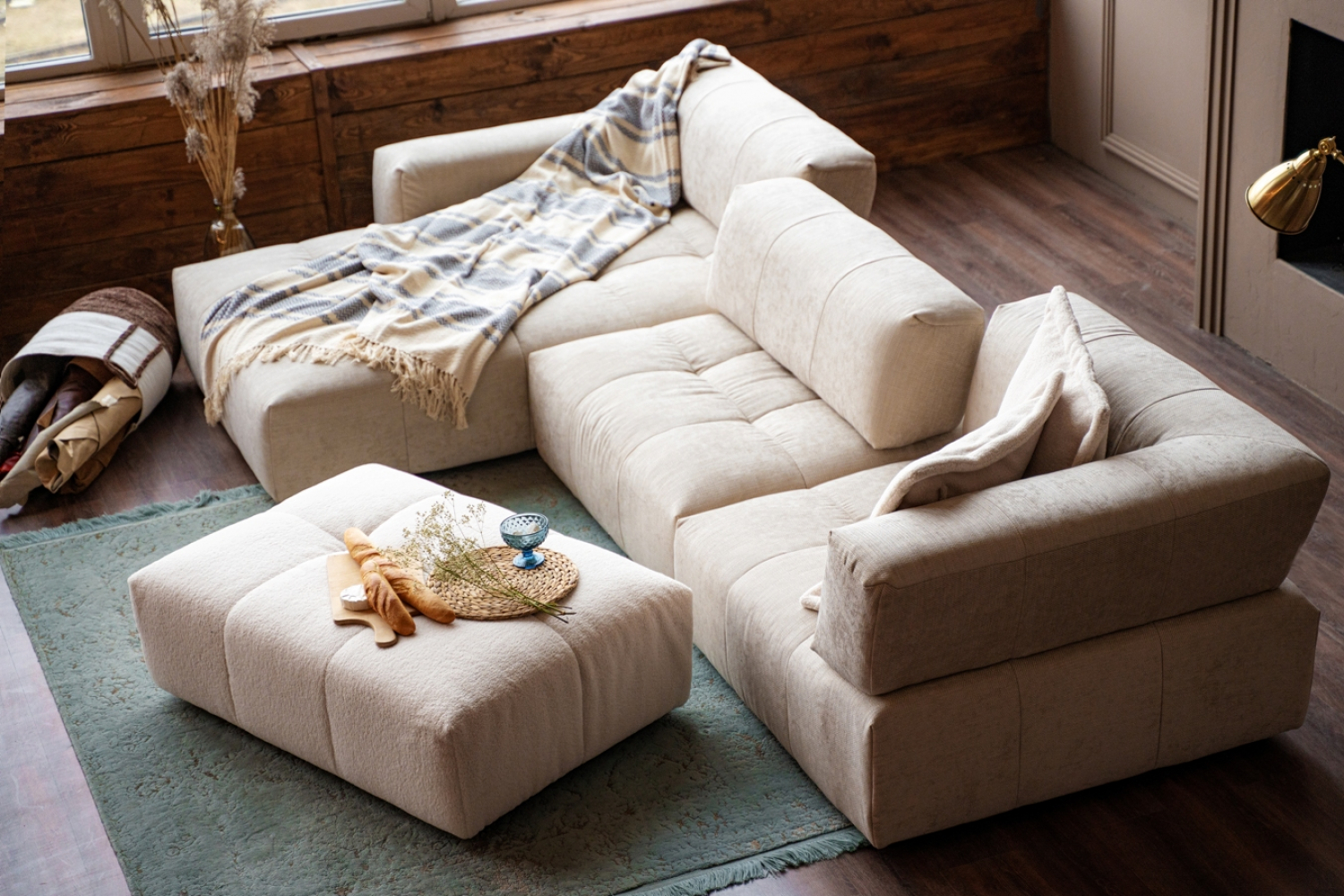 CINNO CILLINI диван ЛОФТ.Стиль: Modern.Тип: модульный с угловым шезлонгом; передвижными подушками спины; пуфом(ш.800/г.1200) диван.Цвет: - .Обивка: сложнофактурная ткань 100% полиэстер ,категория высшая. Отделка: тафтинг.Размеры,мм:ш.3900/г.2000/в.800. Информация: модель доступна с различными модулями; материалы обивки (ткань; натуральная кожа) разной фактуры и цветовой гаммы.