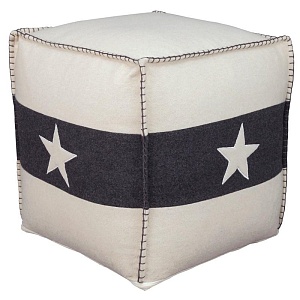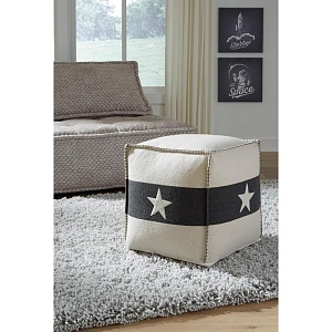 ASHLEY пуф LEONARDO (коллекция AMERICAN LIFESTYLE).Стиль: американский Casual.Тип: акцентный, квадратный пуф Americana с аппликацией в виде звезды.Цвет: белый/чёрный.Обивка: сложнофактурная ткань 100% шерсть,категория высшая,одобрена по высоким американским стандартам качества AHFA(износостойкость,долговечность).Отделка: чехол на молнии; ручная вышивка .Размеры,мм: ш.407/г.407/в.407.