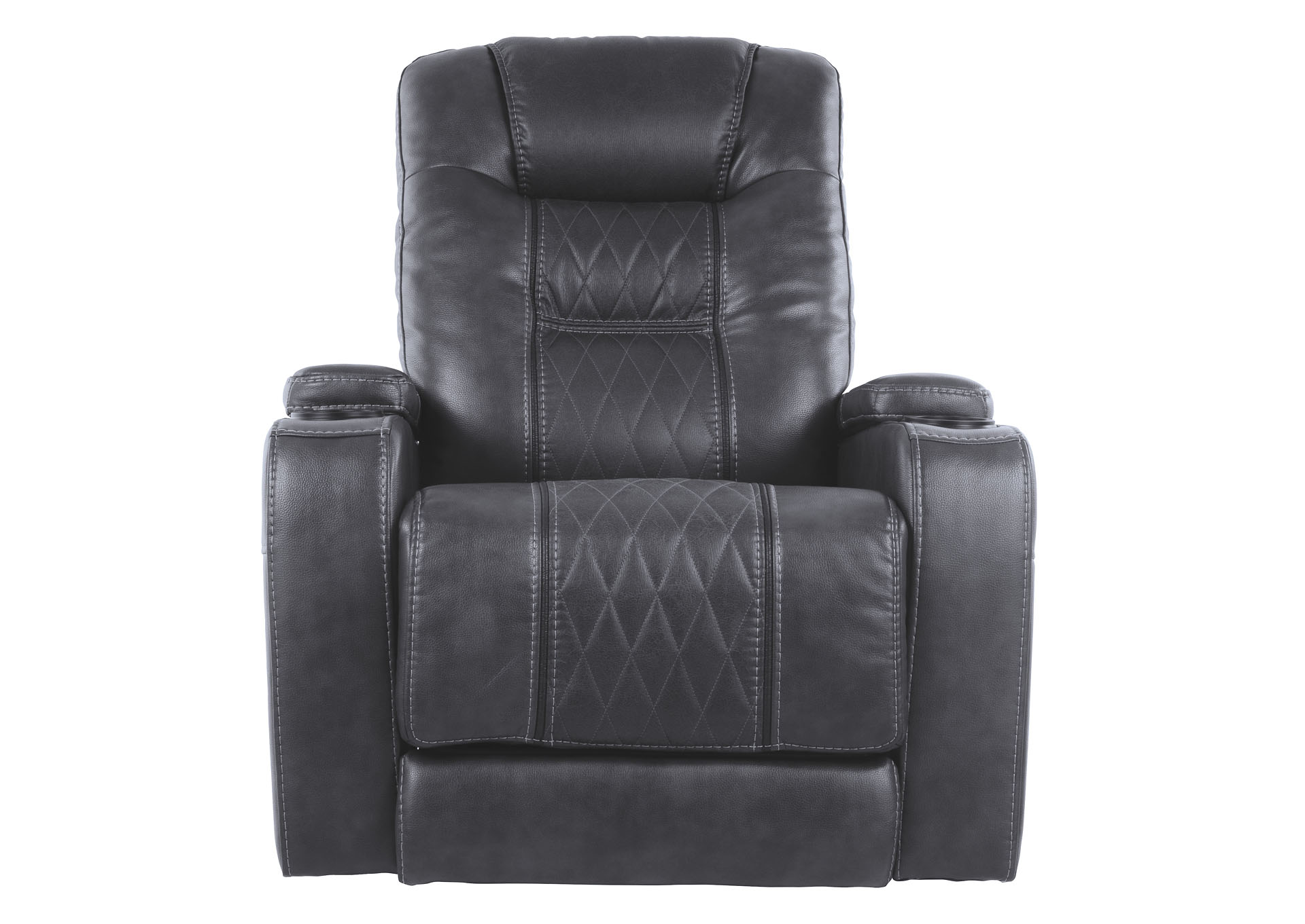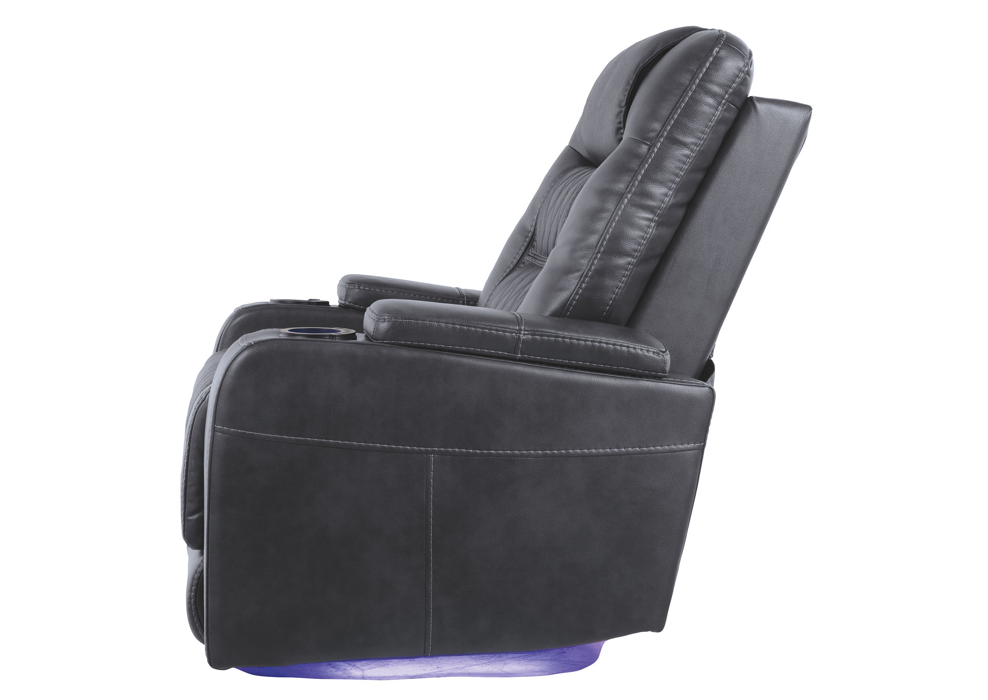 ASHLEY кресло COMPOSER ( коллекция AMERICAN LIFESTYLE) .Стиль: американский Modern.Тип: кресло реклайнер с электроприводом,управление положениями в одно касание,регулируемые подголовники Easy View,USB-порт зарядки в каждом контроллере питания,два подстаканника,синяя LED-подсветка .Цвет: доступны: серый/коричневый .Обивка: экокожа( PU 11%;полиэстер 89%),категория высшая,одобрена по высоким американским стандартам качества AHFA(износостойкость,долговечность).Размеры,мм:ш.914/г.1019/в.1073.