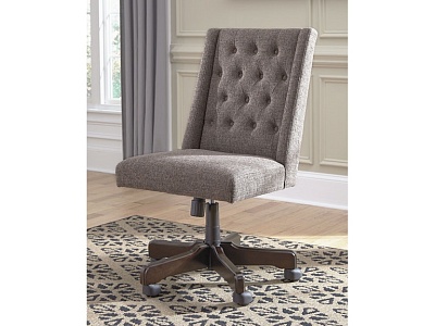 ASHLEY кресло OFFICE CHAIR PROGRAM(коллекция AMERICAN LIFESTYLE).Стиль: американский Vintage Casual.Тип: мягкое кресло для кабинета, с ручной регулировкой наклона и высоты,поворот на 360 градусов,ролики для перемещения.Цвет: серый .Обивка: сложнофактурная ткань 100% полиэстер,одобрена по высоким американским стандартам AHFA(износостойкость,долговечность).Отделка: декоративные мебельные пуговицы.Размеры,мм:ш.578/г.610/в.1048.