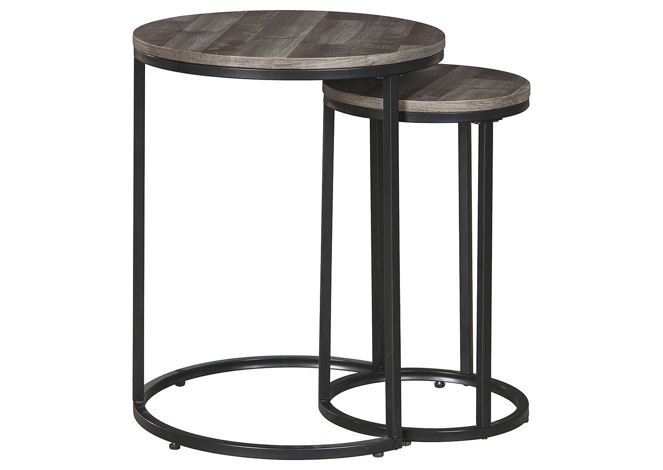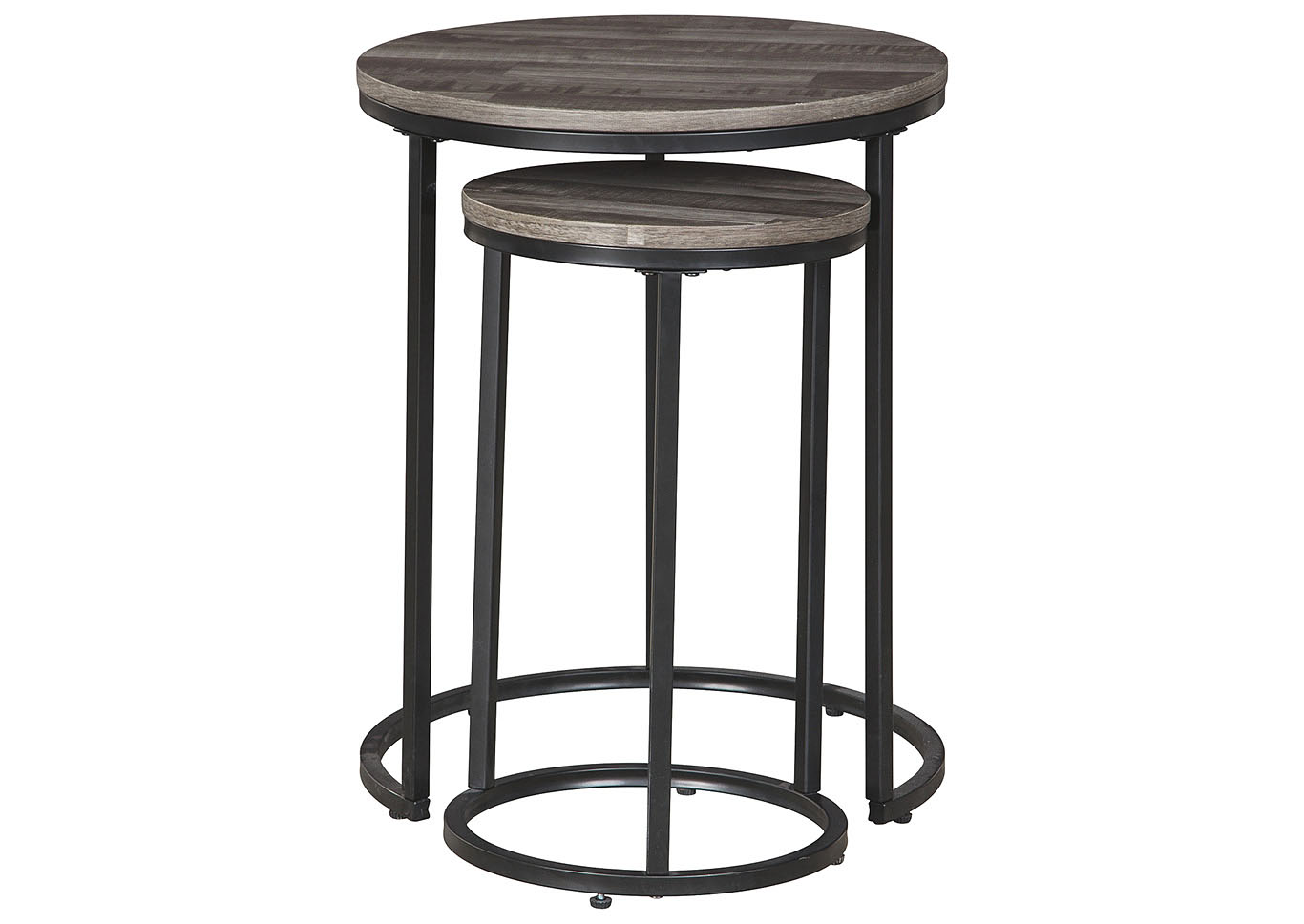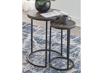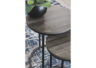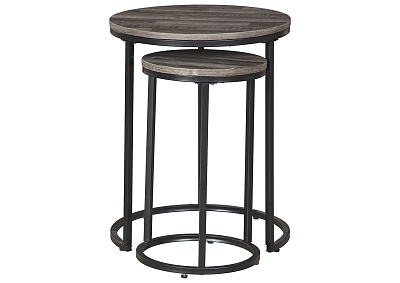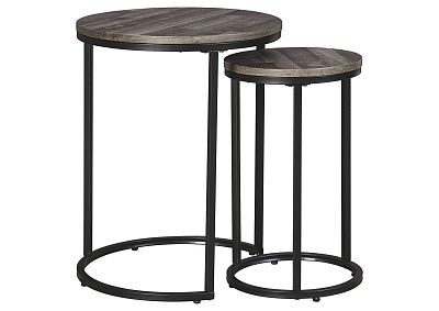 ASHLEY набор BRIARSBORO (коллекция AMERICAN LIFESTYLE).Стиль: американский Casual.Тип: набор из двух круглых приставных столов.Цвет: серый/чёрный.Размеры,мм: высокий(ш.460/г.460/в.580)/низкий(ш.300/г.300/в.510).