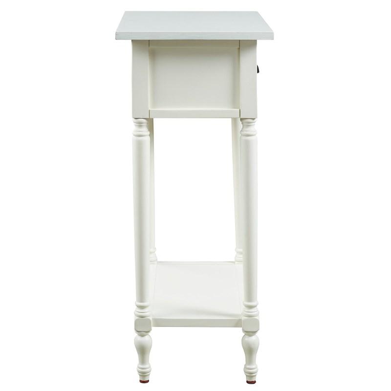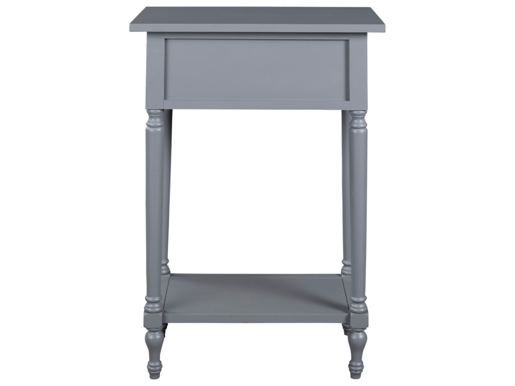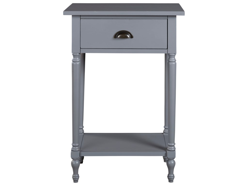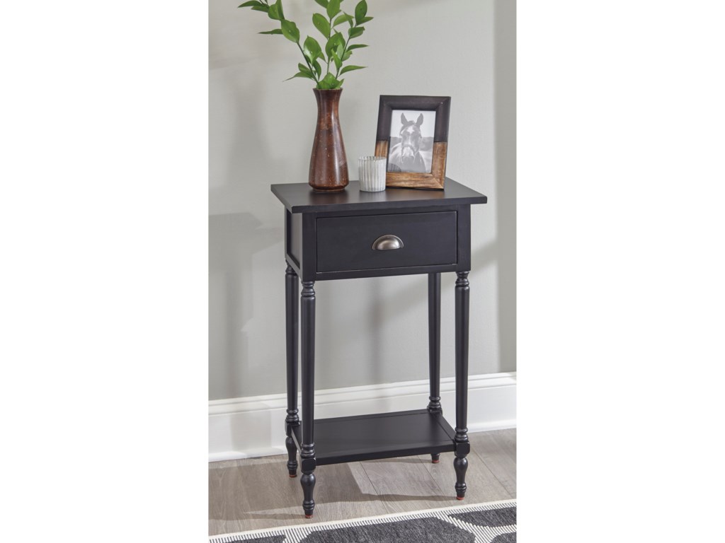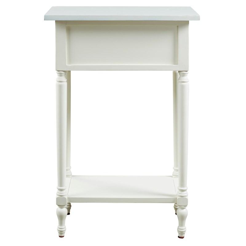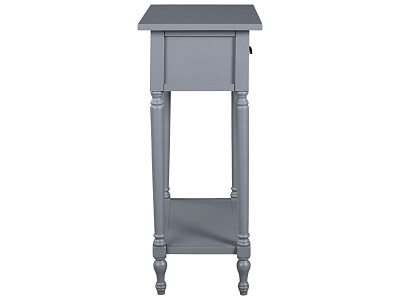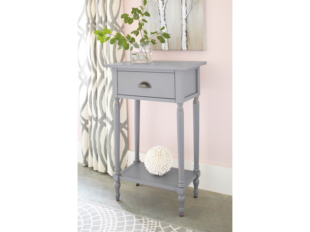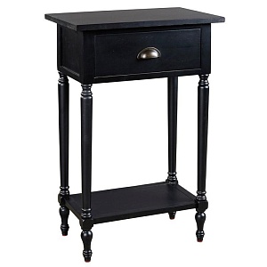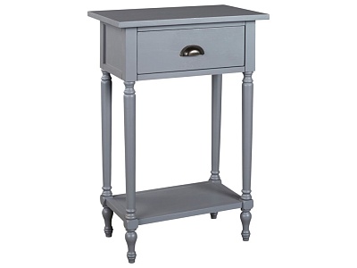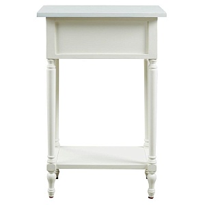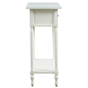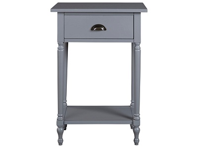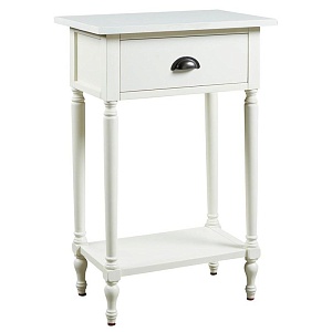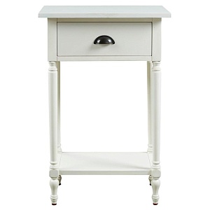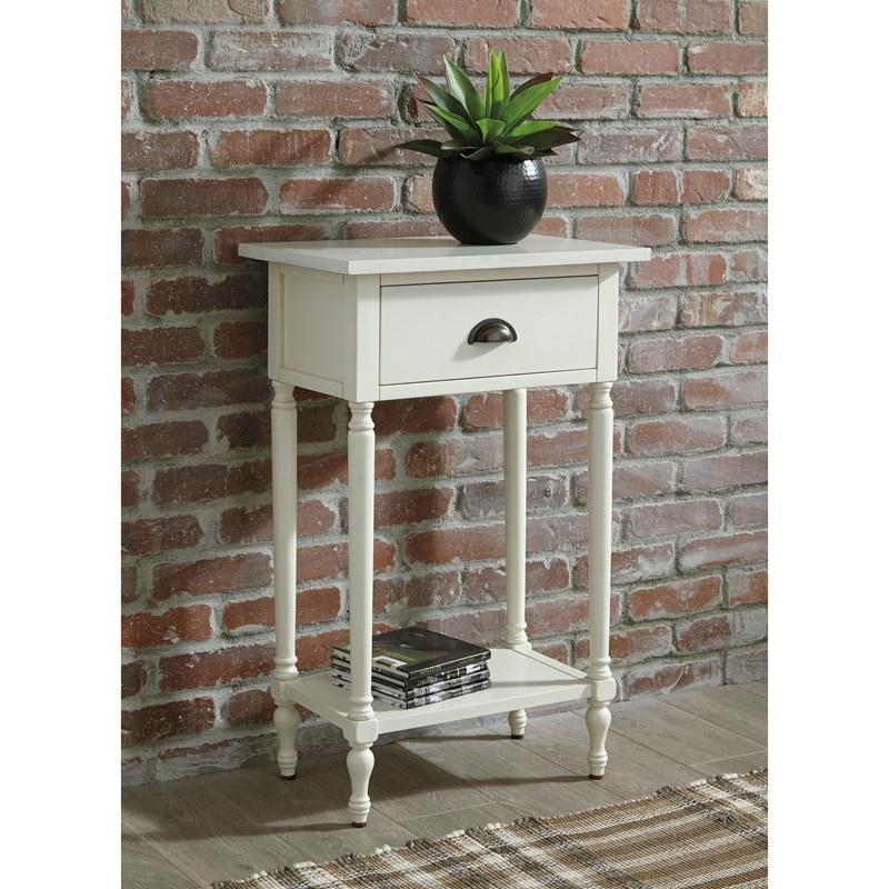 ASHLEY стол JUINVILLE (коллекция AMERICAN LIFESTYLE).Стиль: американский Casual.Тип: прямоугольный акцентный приставной стол с одним выдвижным ящиком и одной открытой фиксированной полкой.Цвет: доступны: белый/серый/ чёрный.Отделка: металлическая искусственно состаренная бронзовая фурнитура.Размеры:ш.483/г.381/в.749.