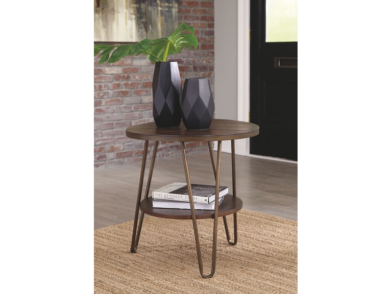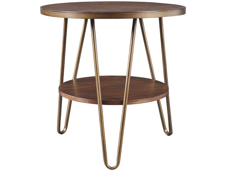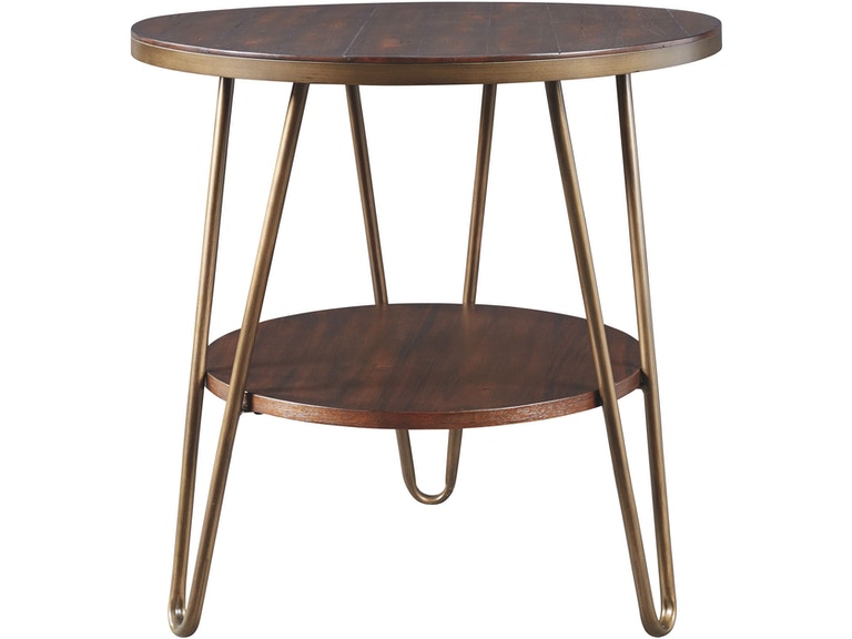 ASHLEY стол LETTORI (коллекция AMERICAN LIFESTYLE).Стиль:американский Vintage Casual.Тип: круглый приставной стол с одной открытой фиксированной полкой и трубчатой металлической рамой.Цвет: коричневый.Отделка: шпон эвкалипта, тёмная латунь.Размеры,мм:ш.610/г.610/в.603.