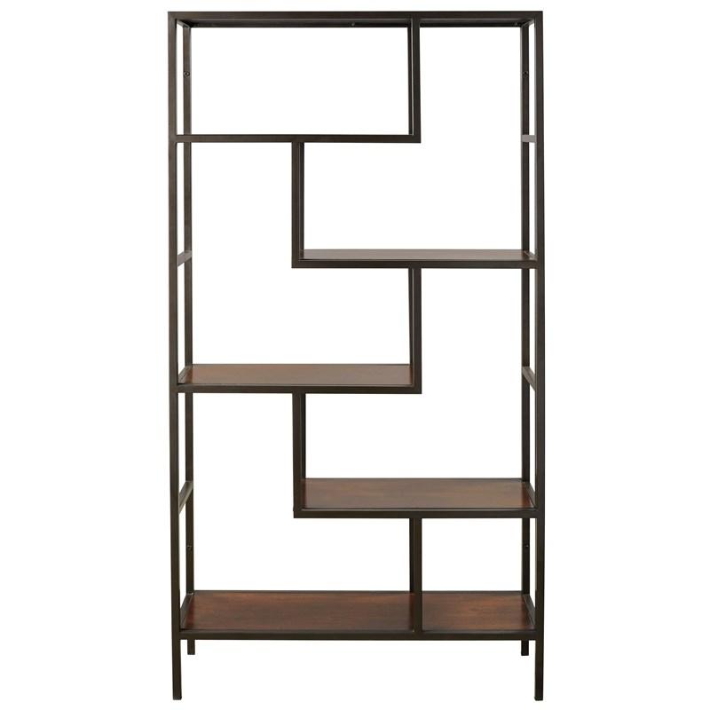 ASHLEY стеллаж FRANKWELL (коллекция AMERICAN LIFESTYLE).Стиль: американский Modern.Тип: многофункциональный акцентный стеллаж c пятью фиксированными смещёнными полками,открытой спиной на металлическом основании.Цвет: коричневый/чёрный.Отделка: дерево; чёрный цвет рамы.Размеры,мм:ш.915/г.308/в.1785.
