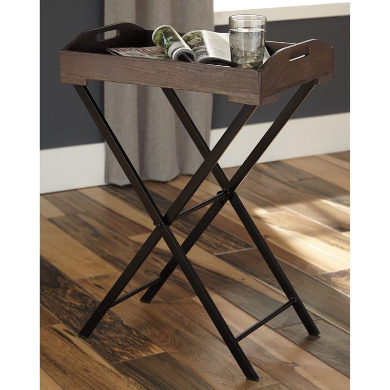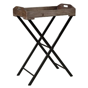 ASHLEY стол CADOCRIDGE (коллекция AMERICAN LIFESTYLE).Стиль: американский Casual.Тип: прямоугольный приставной стол с чёрным складным металлическим основанием и съёмным деревянным подносом.Цвет: серо-коричневый/чёрный.Отделка: искусственно состаренная.Размеры,мм:ш.530/г.381/в.797.