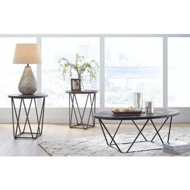 ASHLEY стол NEIMHURST (коллекция AMERICAN LIFESTYLE).Стиль: американский Modern.Тип: круглый приставной стол с металлическим основанием в виде мостовой фермы.Цвет: серо/коричневый.Отделка: текстурный шпон вяза.Размеры,мм: ш.603/г.603/в.635.