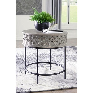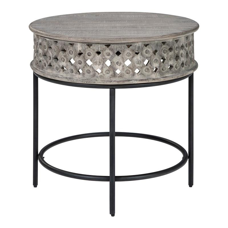 ASHLEY стол RASTELLA (коллекция AMERICAN LIFESTYLE).Стиль: американский Casual.Тип: круглый приставной стол с резным фартуком на металлическом основании.Цвет: серый/чёрный.Отделка: полированное дерево индийского манго; .Размеры,мм:ш.610/г.610/в.610.