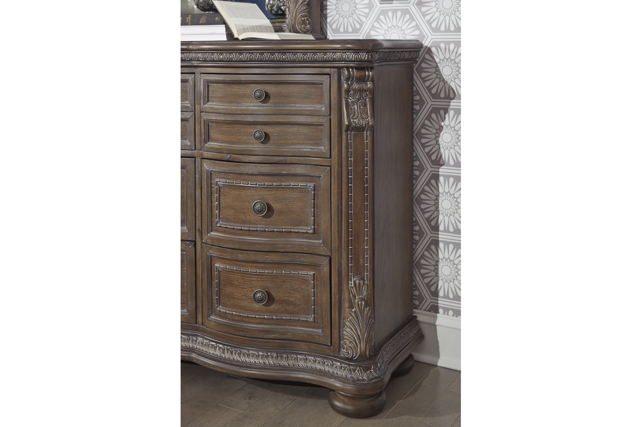 ASHLEY комод CHARMOND (коллекция AMERICAN LIFESTYLE).Стиль: американский Grand Elegance.Тип: комод для спальни широкий,девять ящиков,три верхних обиты фетром.Цвет: коричневый с белыми бликами.Отделка: патинированный шпон дуба,бронзовая фурнитура,декоративные элементы из литой смолы.Размеры,мм:ш.1854/г.508/в.991.