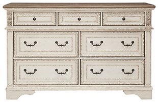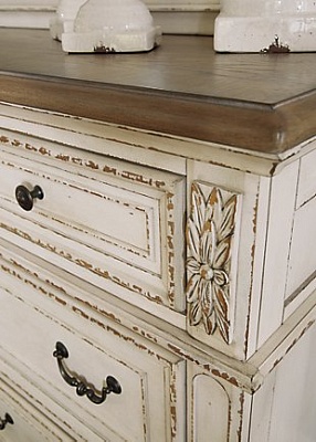ASHLEY комод REALYN коллекция (AMERICAN LIFESTYLE).Стиль: американский Vintage Casual.Тип: комод для спальни широкий,семь выдвижных ящиков с рамочным фасадом.Цвет: слоновая кость,коричневый.Отделка: антикварная искусственно состаренная двухцветная,столешница тёплого коричневого цвета с патиной,фурнитура тёмно-бронзовая.Размеры,мм:ш.1623/г.457/в.1029.