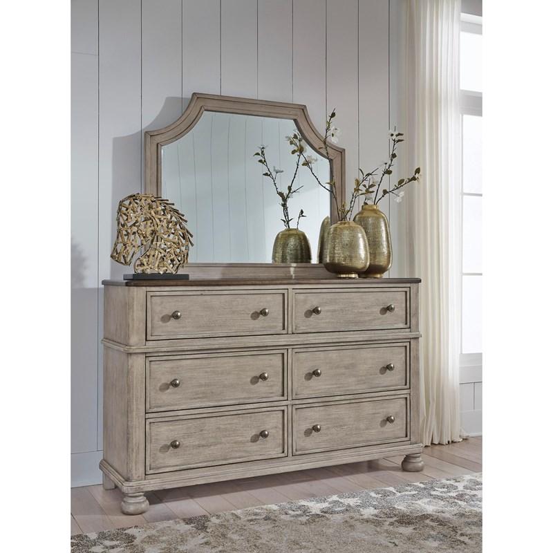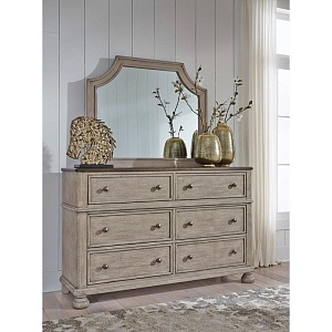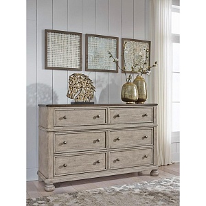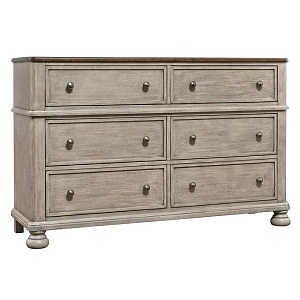 ASHLEY комод FALKHURST(коллекция AMERICAN LIFESTYLE).Стиль: американский Traditional.Тип: комод для спальни широкий с шестью выдвижными ящиками,верхние обиты фетром на открытых ножках.Цвет: серый/ коричневый.Отделка: в два тона шпон акации и ореха,металлическая фурнитура цвета тёмная бронза.Размеры,мм:ш.1524/г.457/в.965.