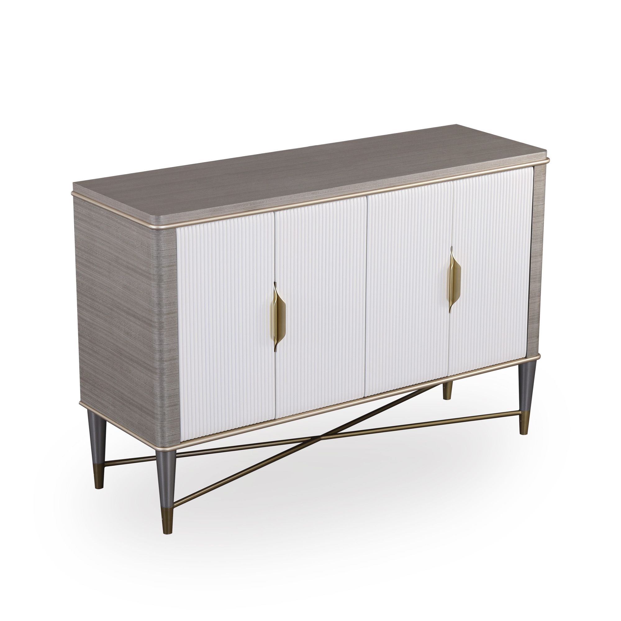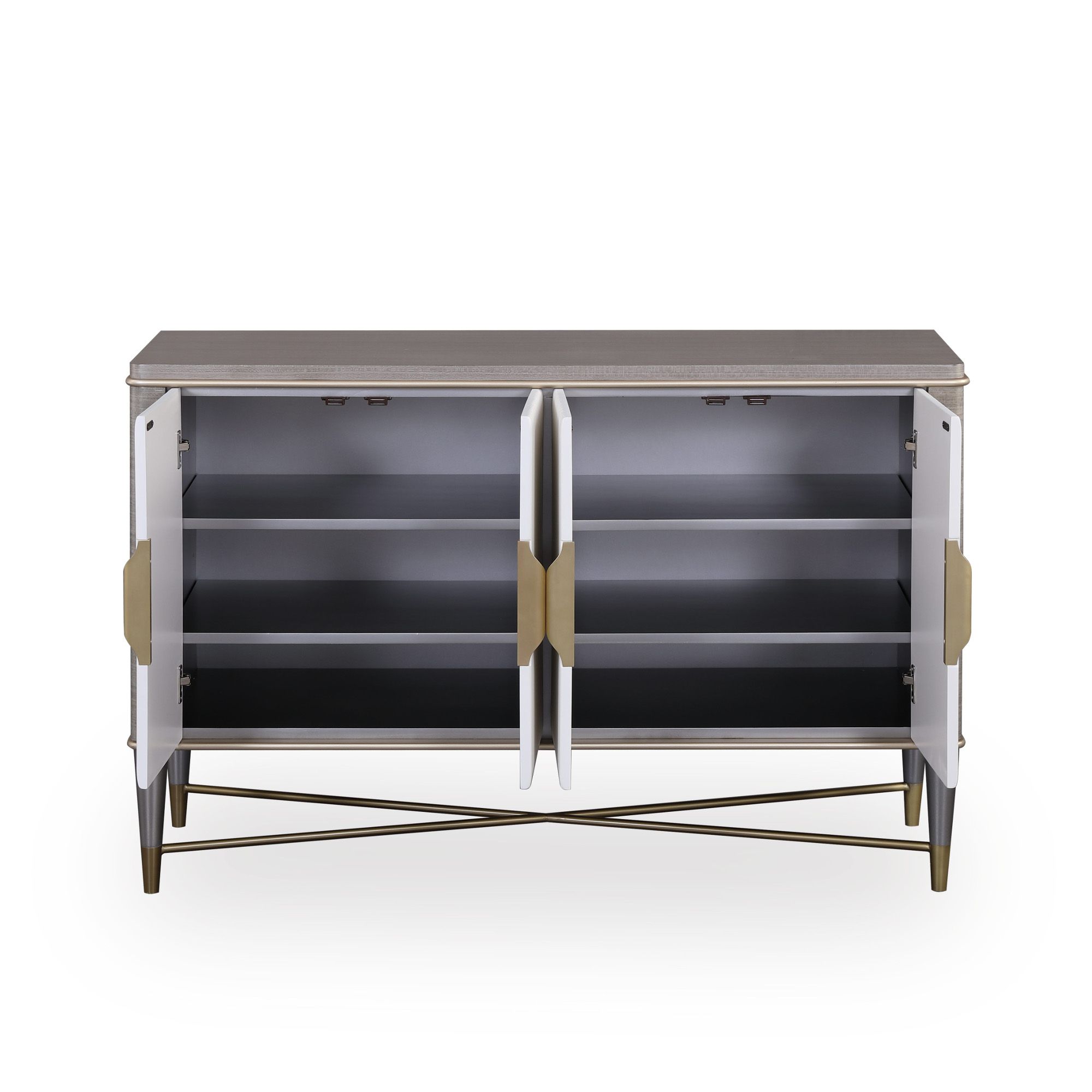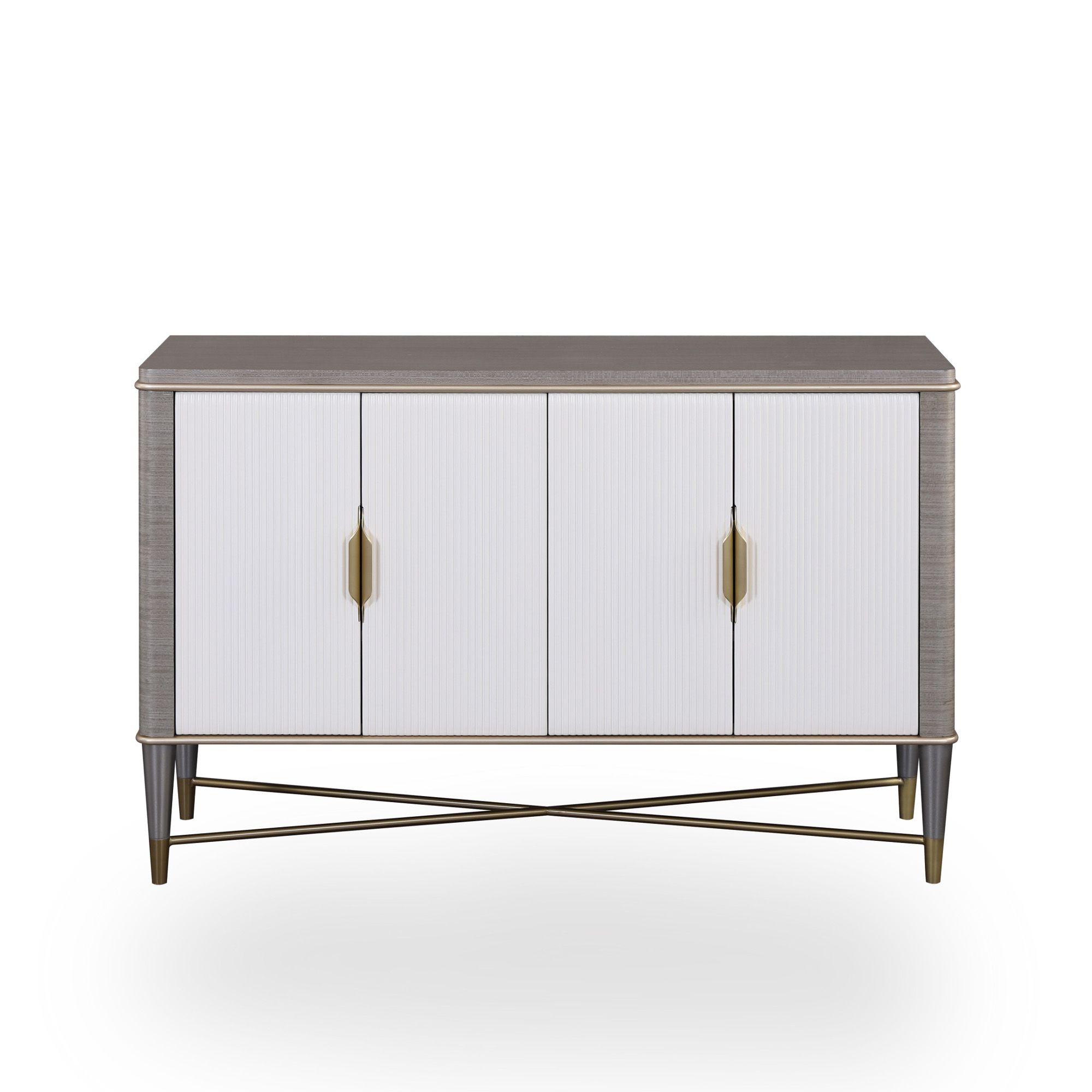 ASHLEY буфет BRENSAN (коллекция KINGSWERE).Стиль: американский Transition.Тип: буфет/комод, для столовой/гостиной; два шкафа, четыре двери; четыре регулируемые полки.Цвет: серый/светло- серый.Размеры,мм:ш.1364/г.452/в.900.